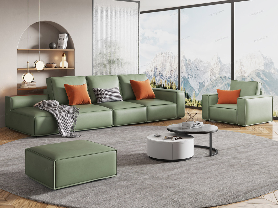 | 产品材质 : 接触面进口头层黄牛皮+羽绒+高密度海绵+俄罗斯落叶松实木框架 | 包件数 : 5 | 包装体积(m3) : 3.2 | |