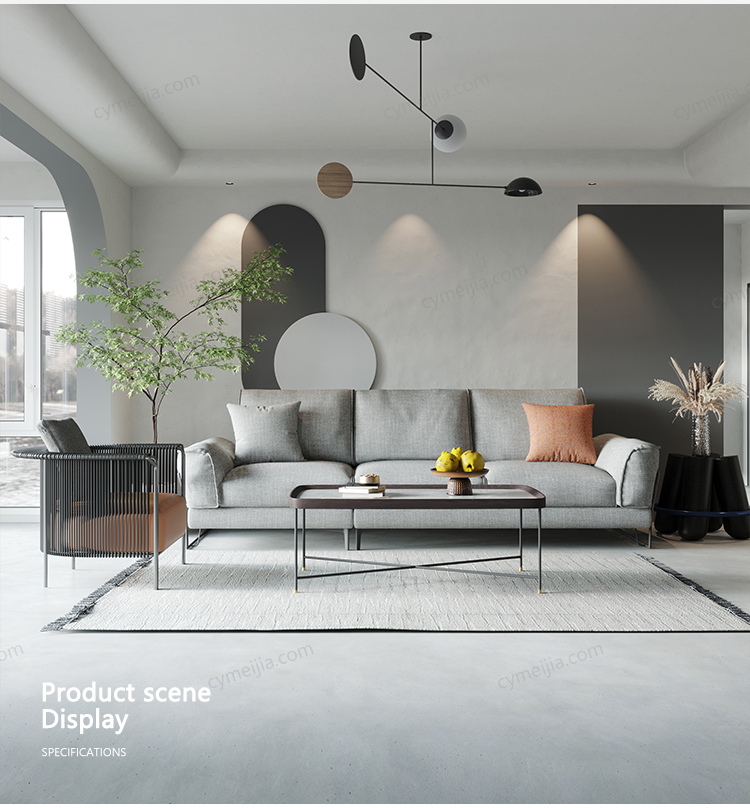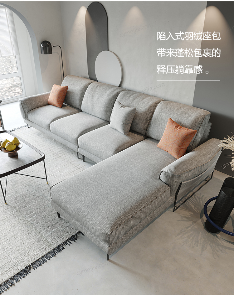 | 产品材质 : | 透气棉麻+羽绒内芯+高回弹海绵+俄罗斯落叶松实木框架+玫瑰桉+铁艺脚 |