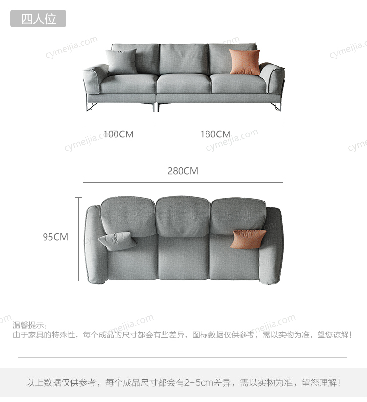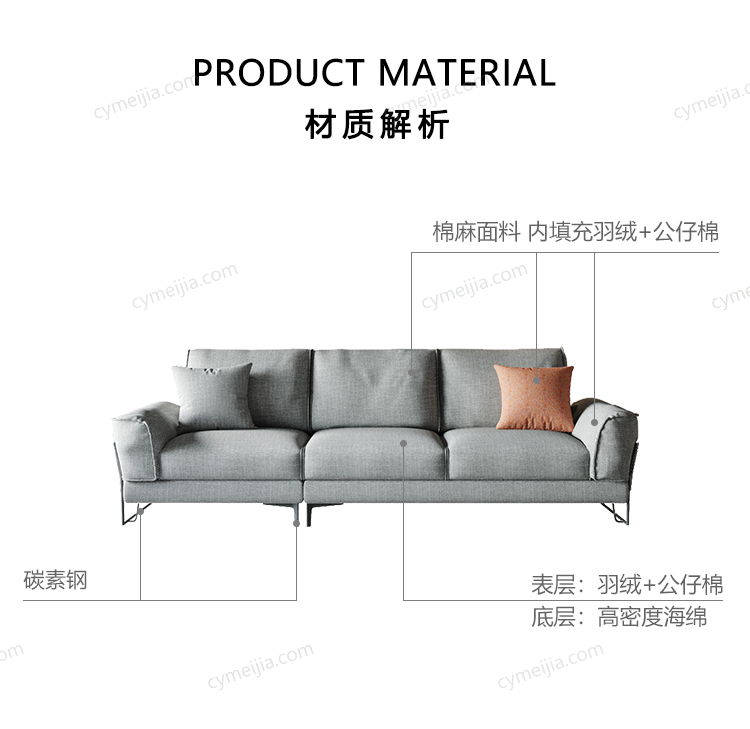 | 产品材质 : | 透气棉麻+羽绒内芯+高回弹海绵+俄罗斯落叶松实木框架+玫瑰桉+铁艺脚 |