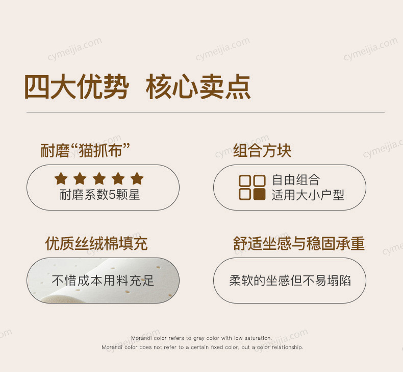 | 产品材质 : | 科技绒布+高密度海绵+俄罗斯落叶松实木框架 |