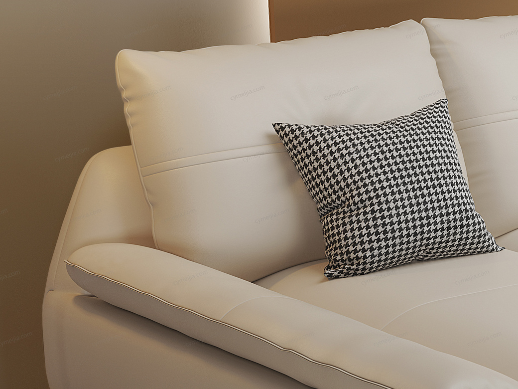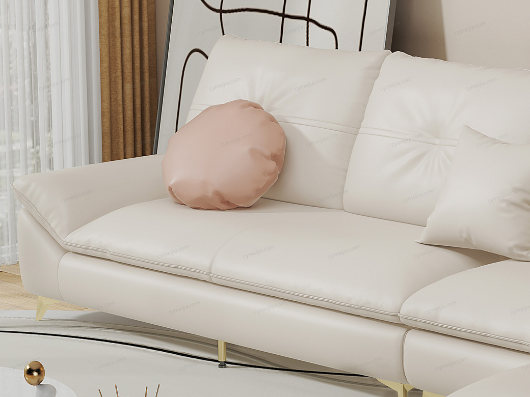 | 产品材质 : | 仿真皮+羽绒靠包+高密度海绵+四面刨光桉木方加松木方+进口4.0蛇形弹簧+加宽橡筋 |