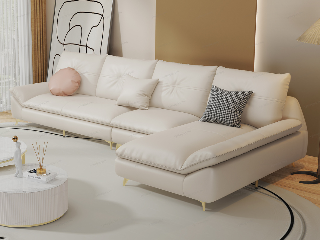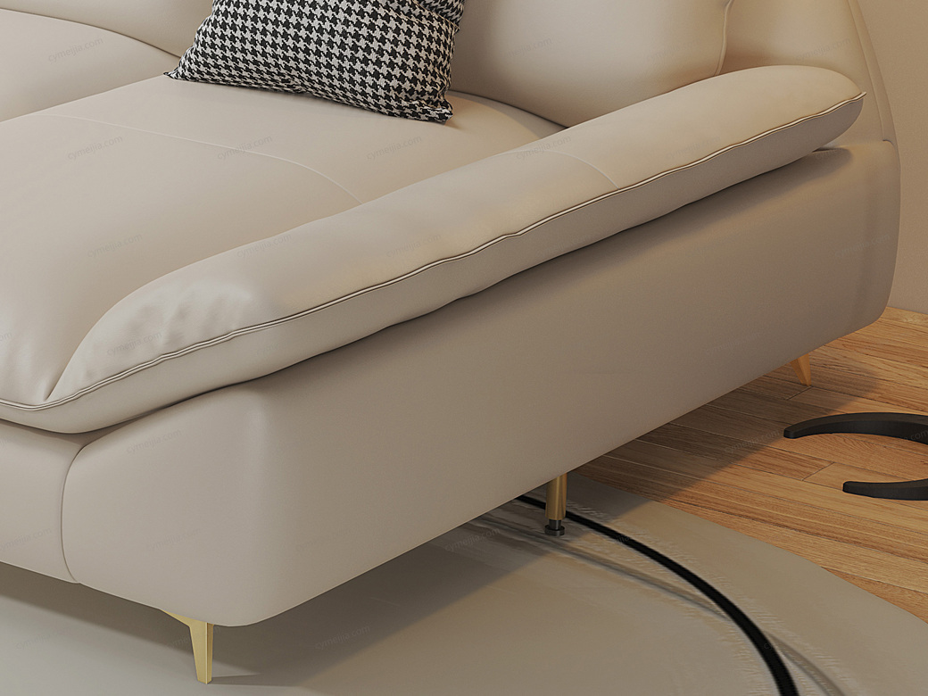 | 产品材质 : | 接触面进口头层黄牛皮+羽绒靠包+高密度海绵+四面刨光桉木方加松木方+进口4.0蛇形弹簧+加宽橡筋 |