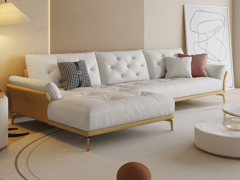 | 产品材质 : | 仿真皮+羽绒座包/靠包+高密度海绵+俄罗斯落叶松实木框架+不锈钢渡金脚 |