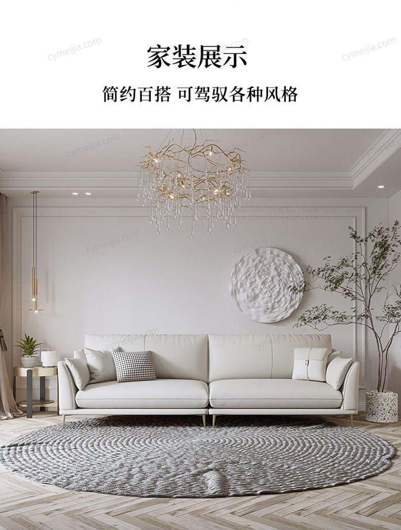 | 产品材质 : | 科技布+羽绒+高密度海绵+俄罗斯落叶松实木框架+玫瑰桉+五金脚 |