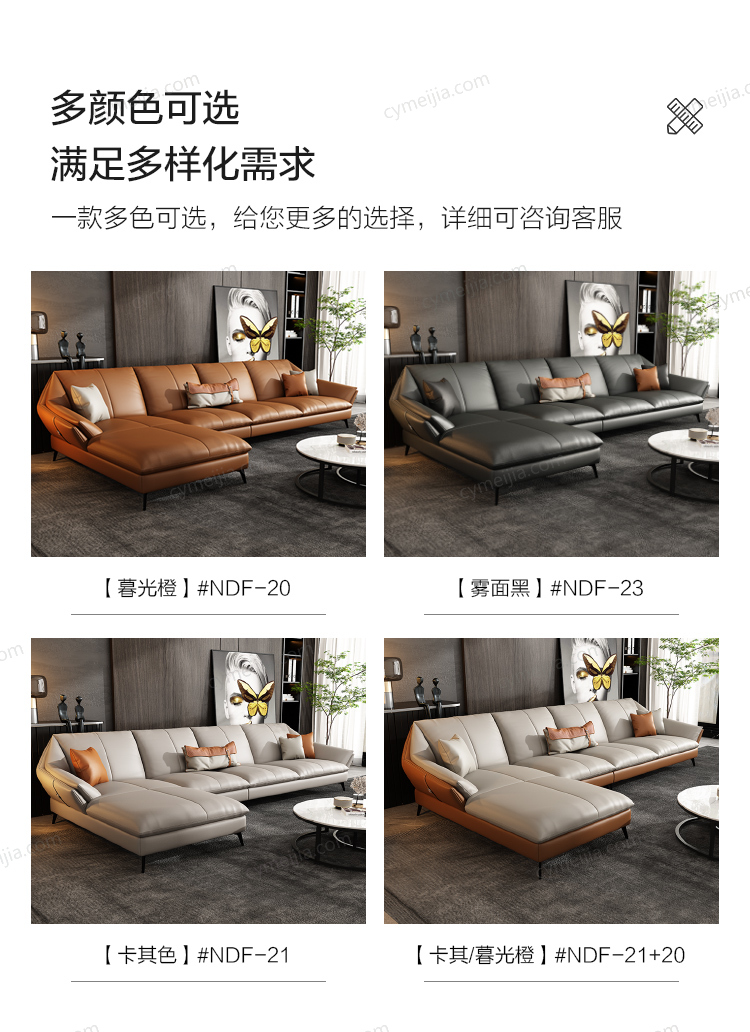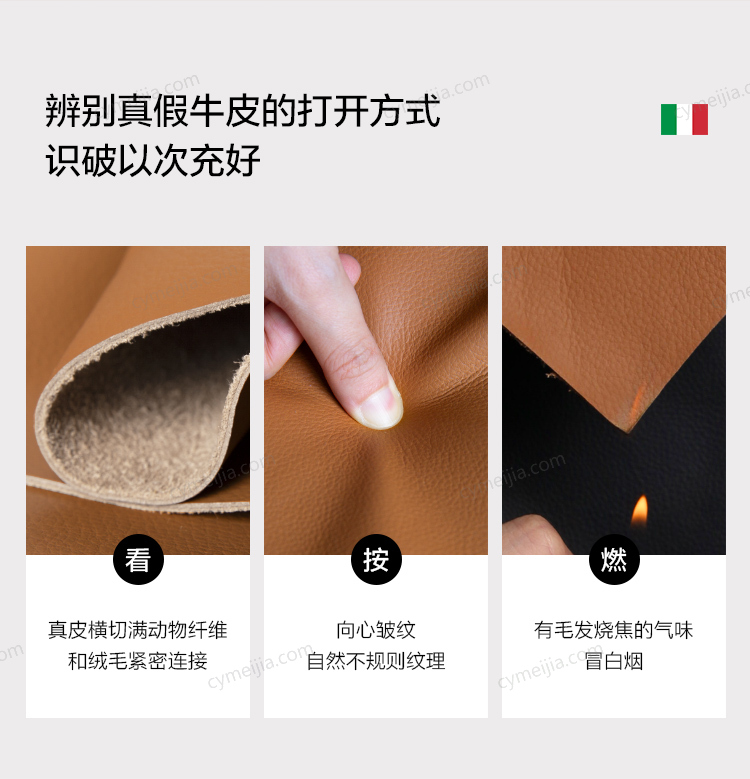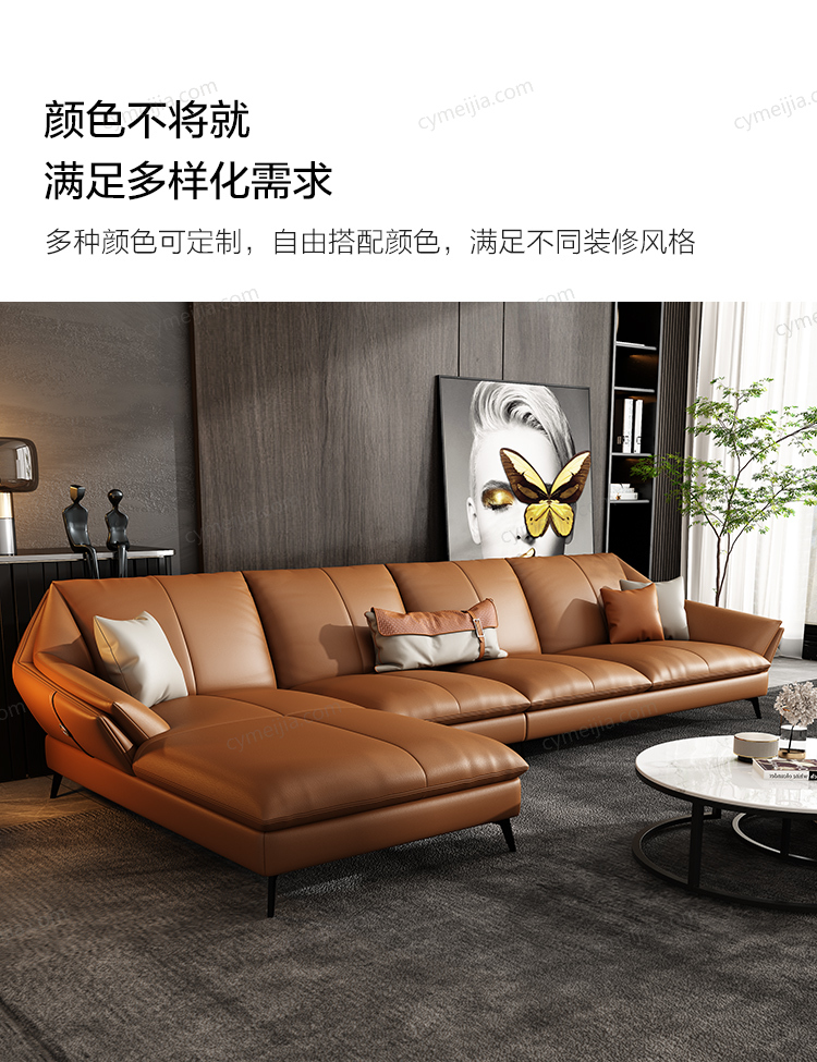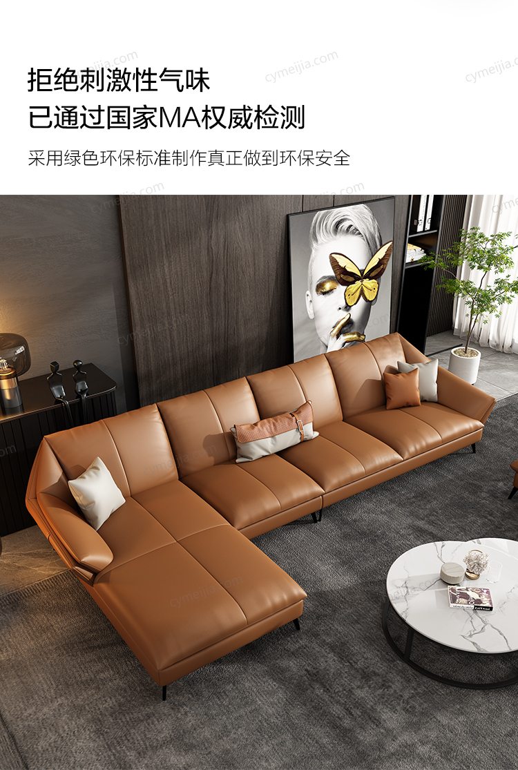 | 产品材质 : | 接触面头层牛皮+高密度海绵+四面刨光桉木方加松木方框架+进口4.0蛇形弹簧+加宽橡筋+碳素钢五金脚 |