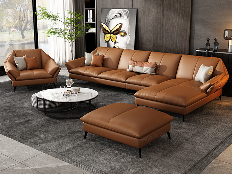 | 产品材质 : | 接触面头层牛皮+高密度海绵+四面刨光桉木方加松木方框架+进口4.0蛇形弹簧+加宽橡筋+碳素钢五金脚 |