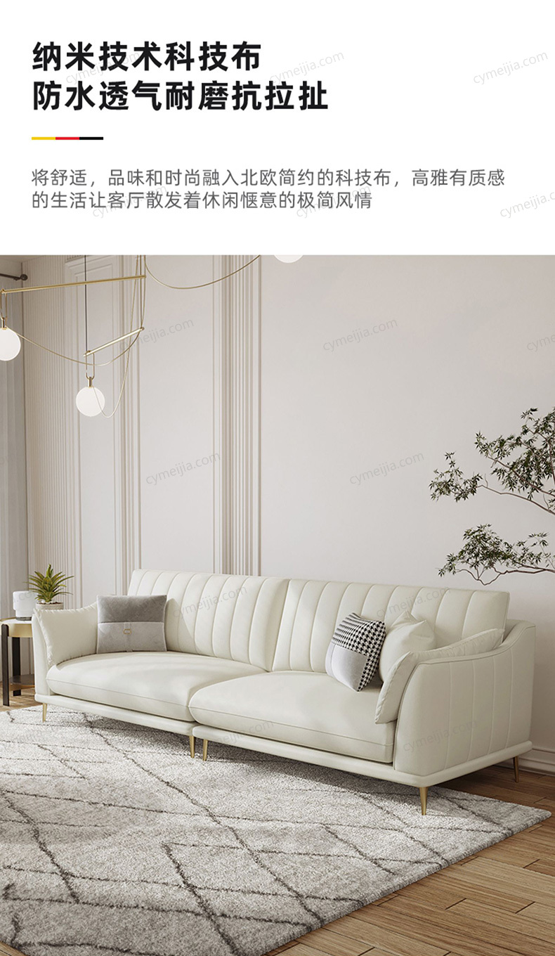 | 产品材质 : | 科技布+羽绒+高密度海绵+俄罗斯落叶松实木框架+玫瑰桉+五金脚 |