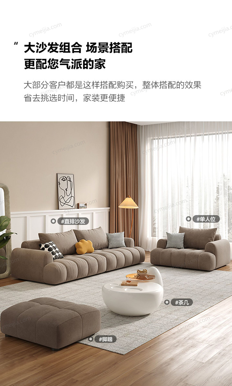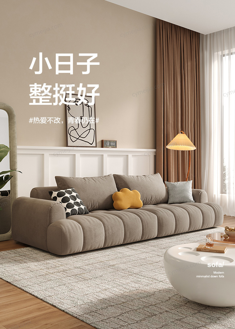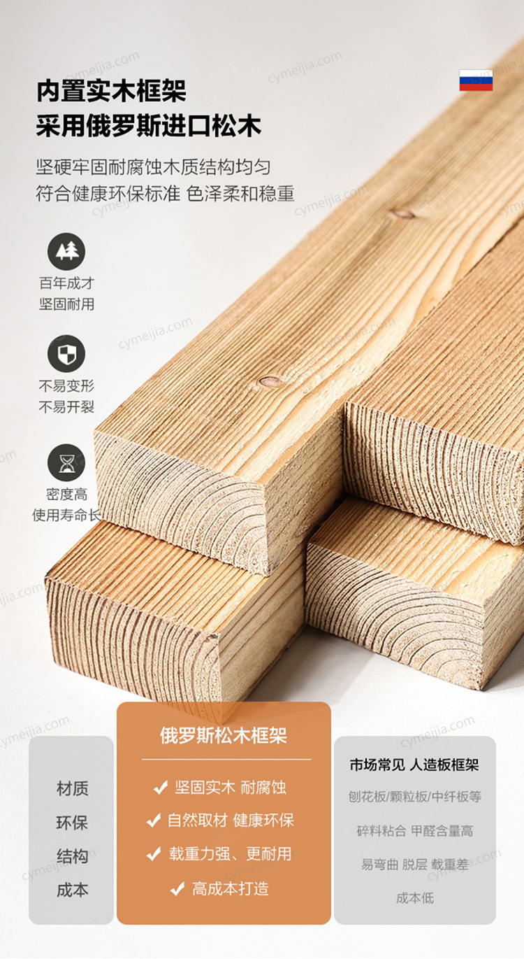 | 产品材质 : | 猫抓布+羽绒+高密度海绵+俄罗斯进口松木框架 |