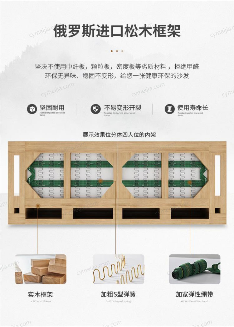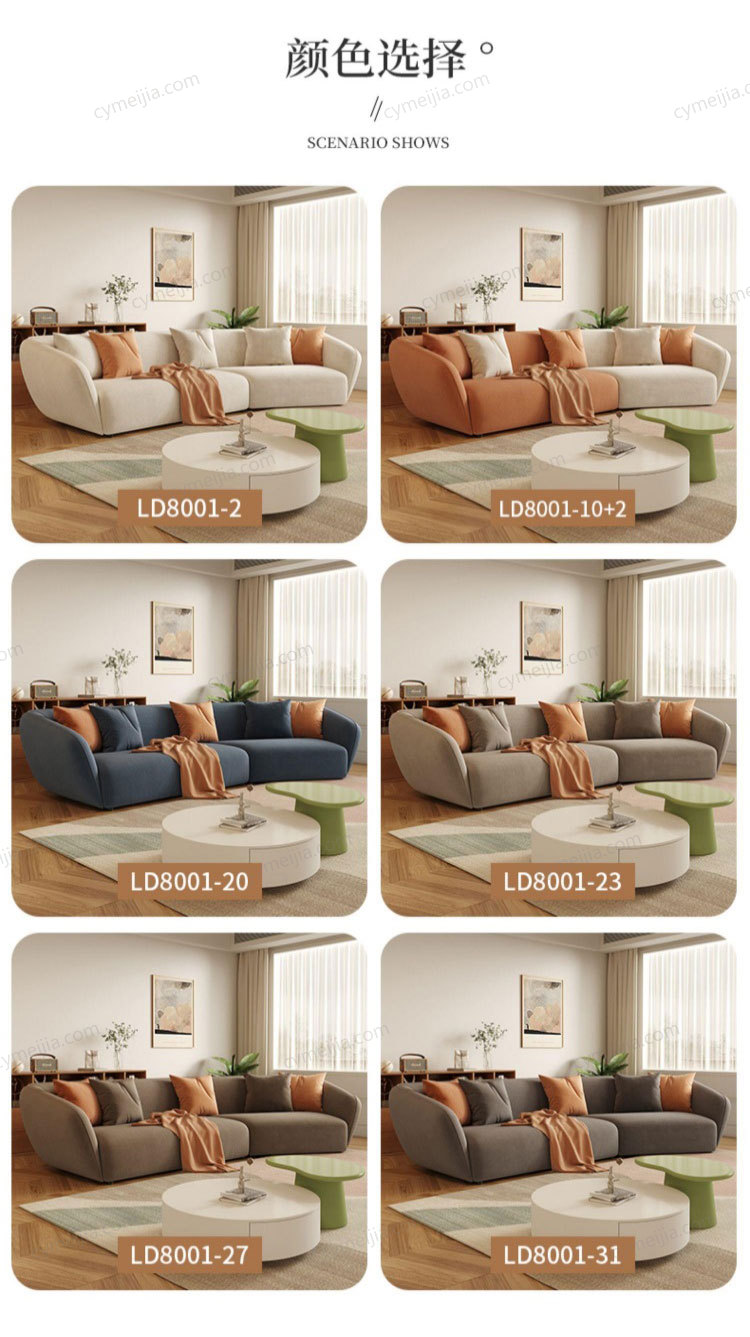 | 产品材质 : | 雪尼尔棉麻+靠包羽绒填充+高密度海绵+俄罗斯进口松木框架 |
