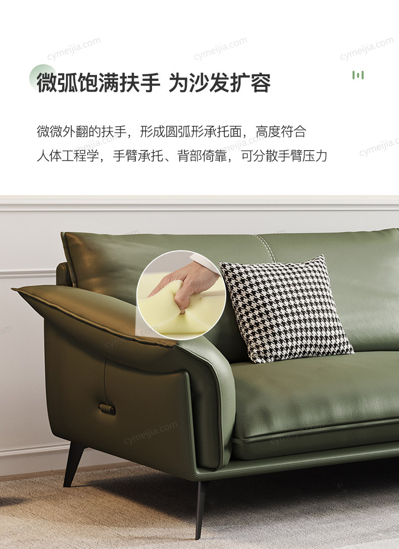 | 产品材质 : | 接触面进口头层黄牛皮+高密度海绵+俄罗斯落叶松实木框架+碳素钢脚 |