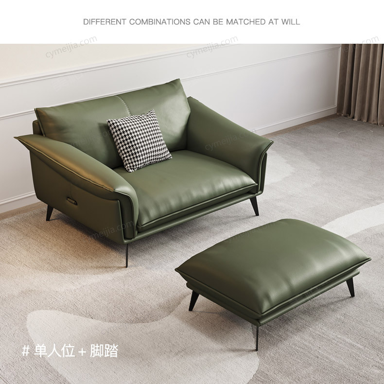 | 产品材质 : | 接触面进口头层黄牛皮+高密度海绵+俄罗斯落叶松实木框架+碳素钢脚 |