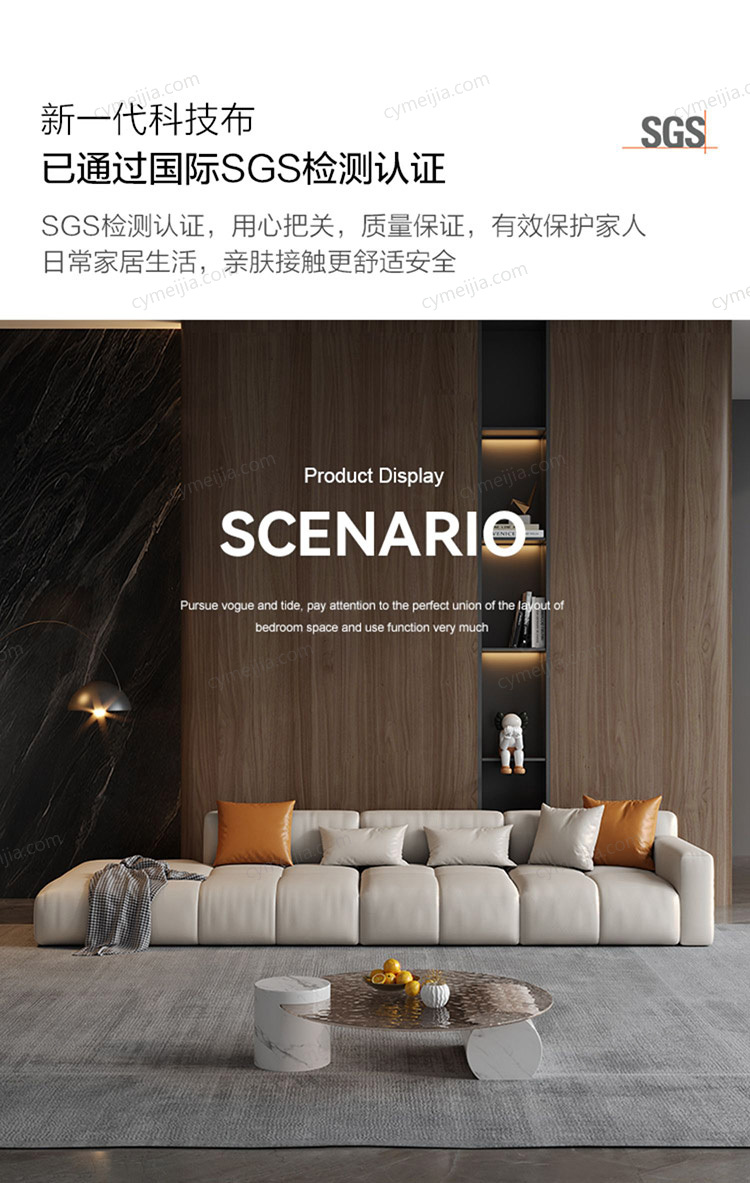 | 产品材质 : | 科技布+羽绒内芯+高密度海绵+俄罗斯落叶松实木框架+实木脚 |