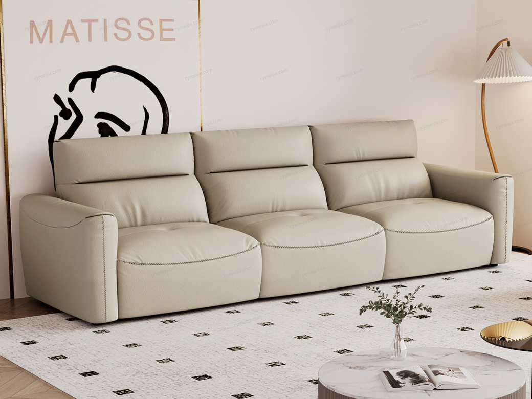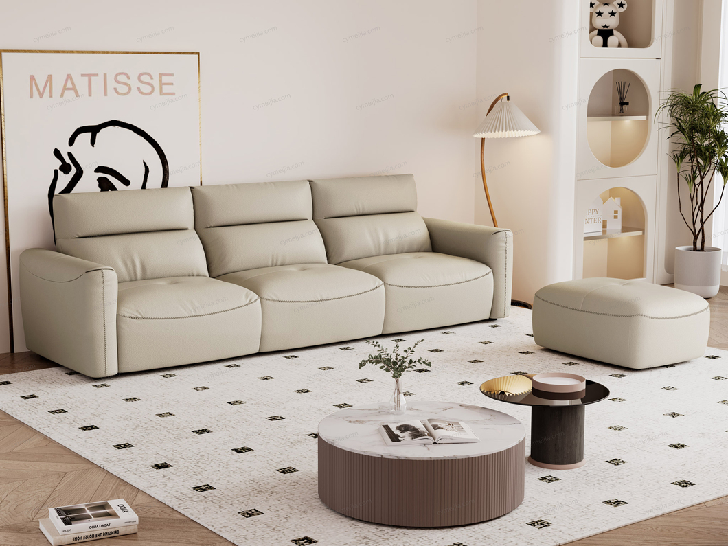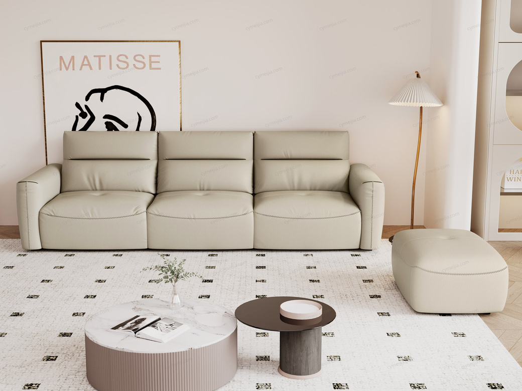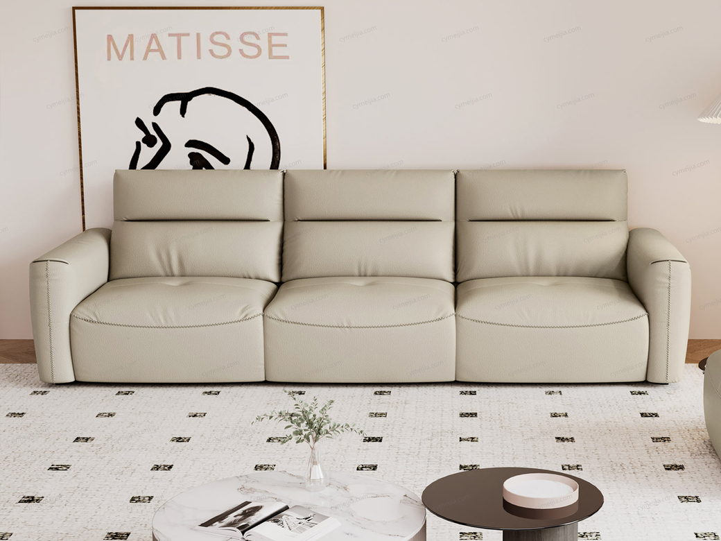 | 产品材质 : | 接触面进口头层黄牛皮+整块高回弹海绵+俄罗斯落叶松实木框架+蛇形弹簧+橡筋底座+碳素钢脚 |