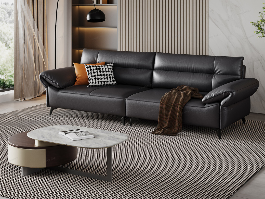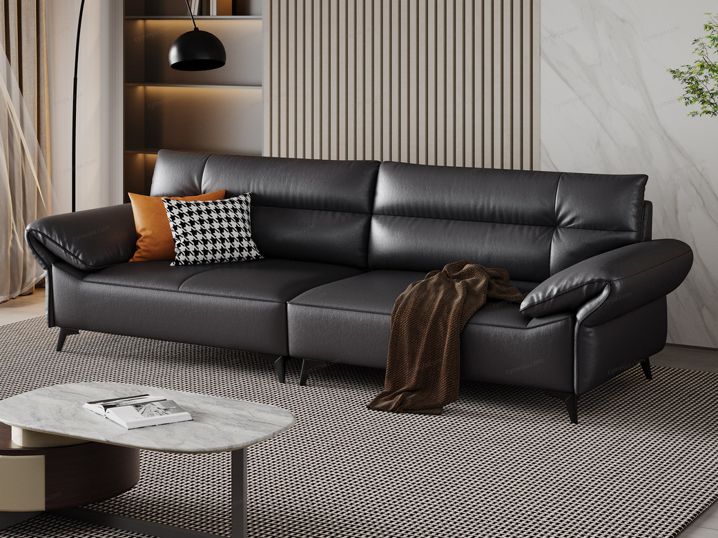 | 产品材质 : 接触面进口头层黄牛皮+羽绒+高密度海绵+俄罗斯落叶松实木框架+13公分哑黑五金脚 | 包件数 : 3 | 包装体积(m3) : 1.92 | |