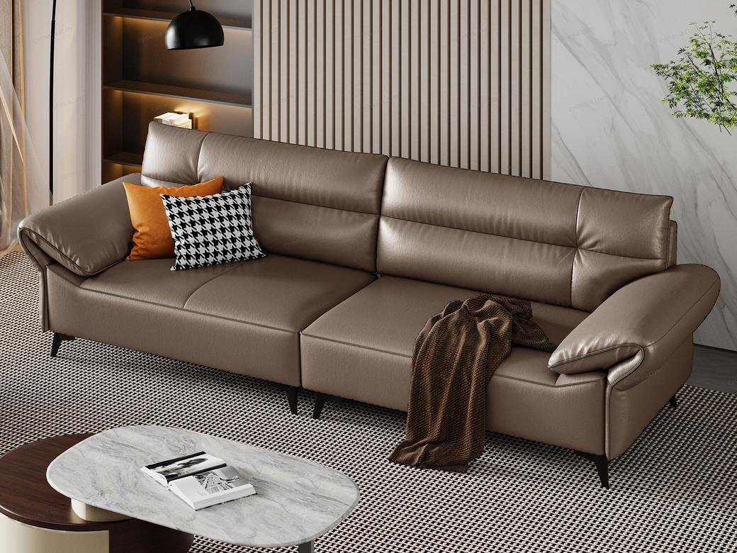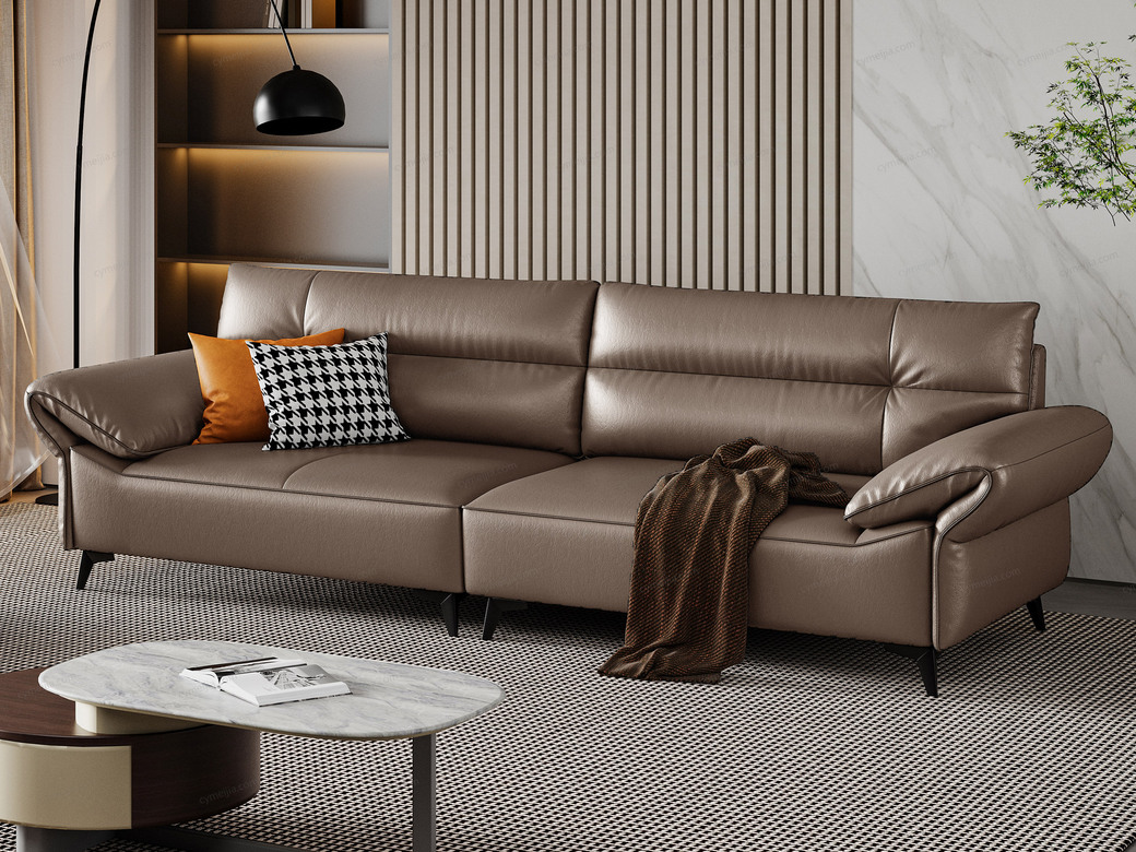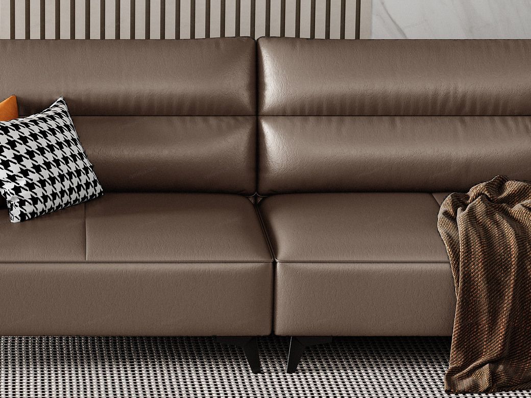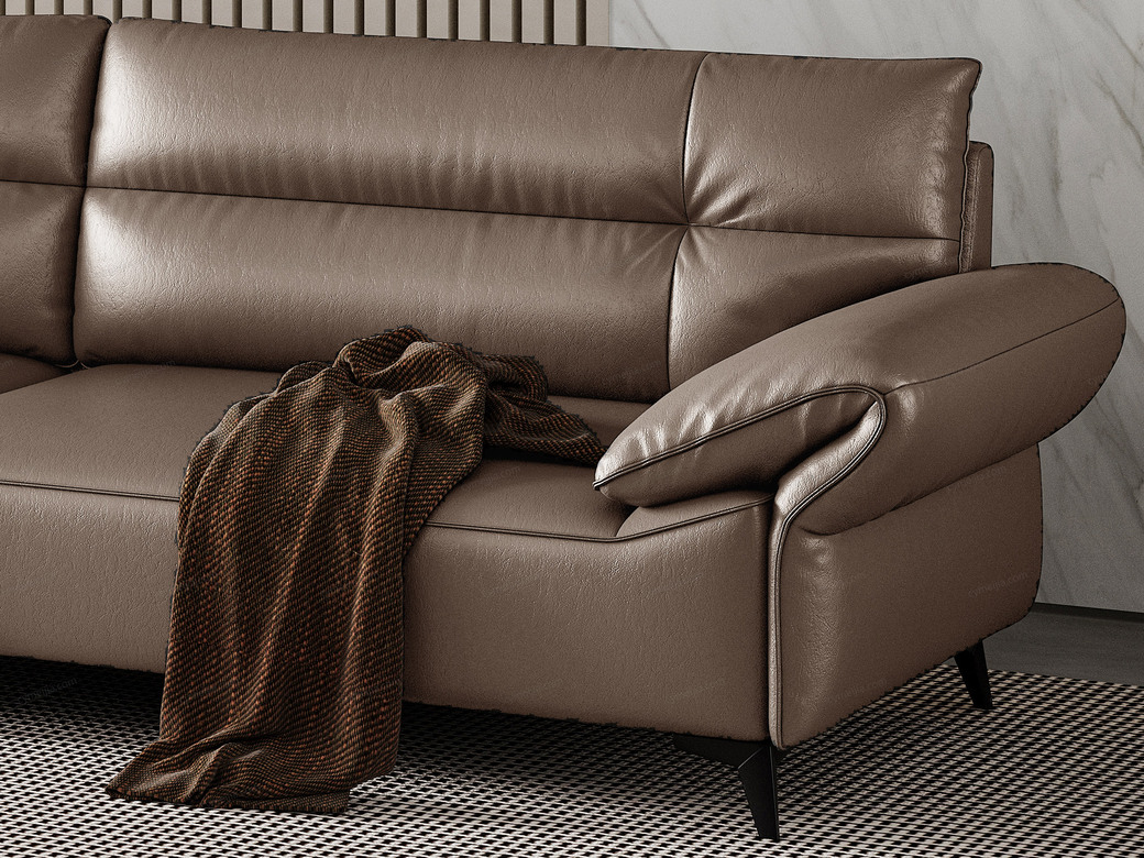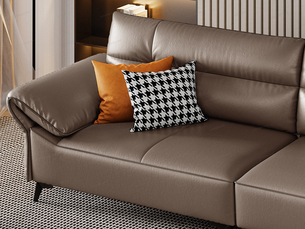 | 产品材质 : 接触面进口头层黄牛皮+羽绒+高密度海绵+俄罗斯落叶松实木框架+13公分哑黑五金脚 | 包件数 : 3 | 包装体积(m3) : 1.92 | |