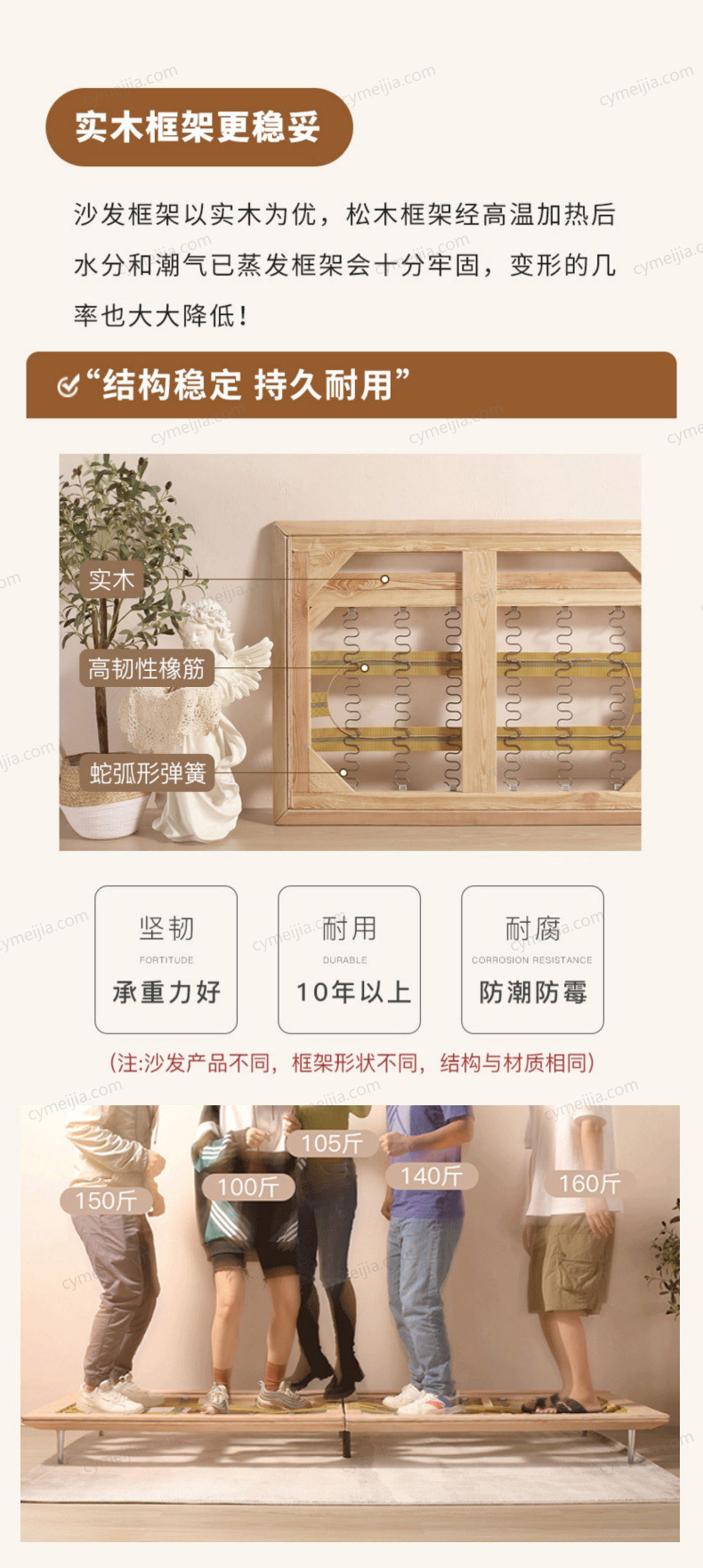 | 产品材质 : | 绒布+羽绒+高回弹海绵+进口俄罗斯松木+玫瑰桉+木脚 |