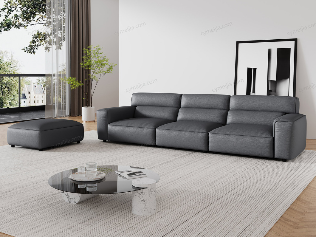 | 产品材质 : 接触面进口头层黄牛皮+高密度海绵+俄罗斯落叶松实木框架+碳钢五金脚 | 包件数 : 4 | 包装体积(m3) : 2.28 | |