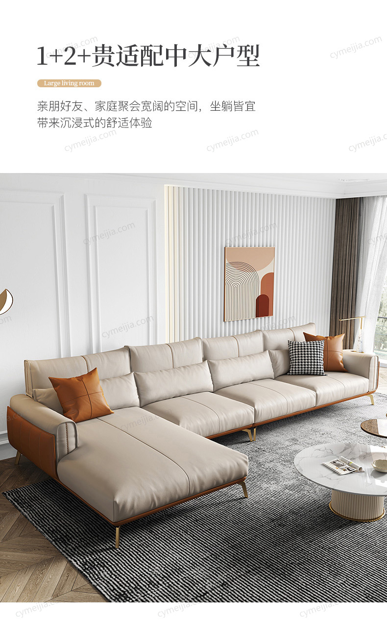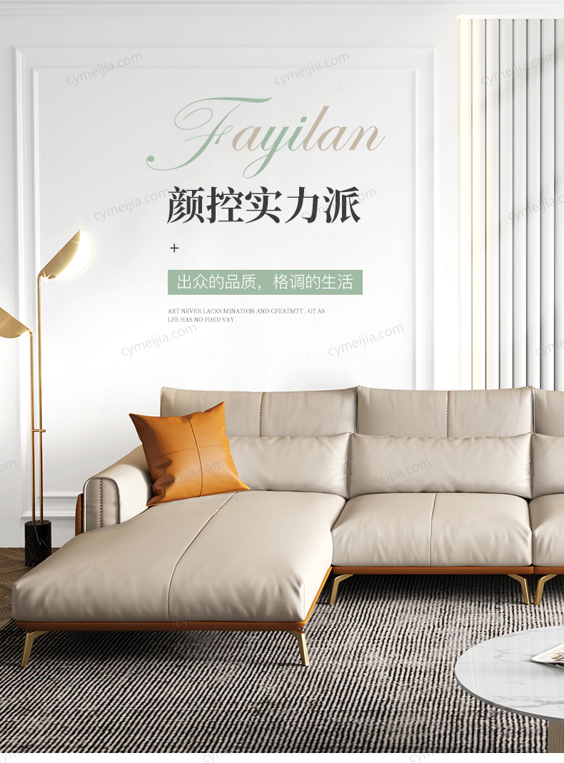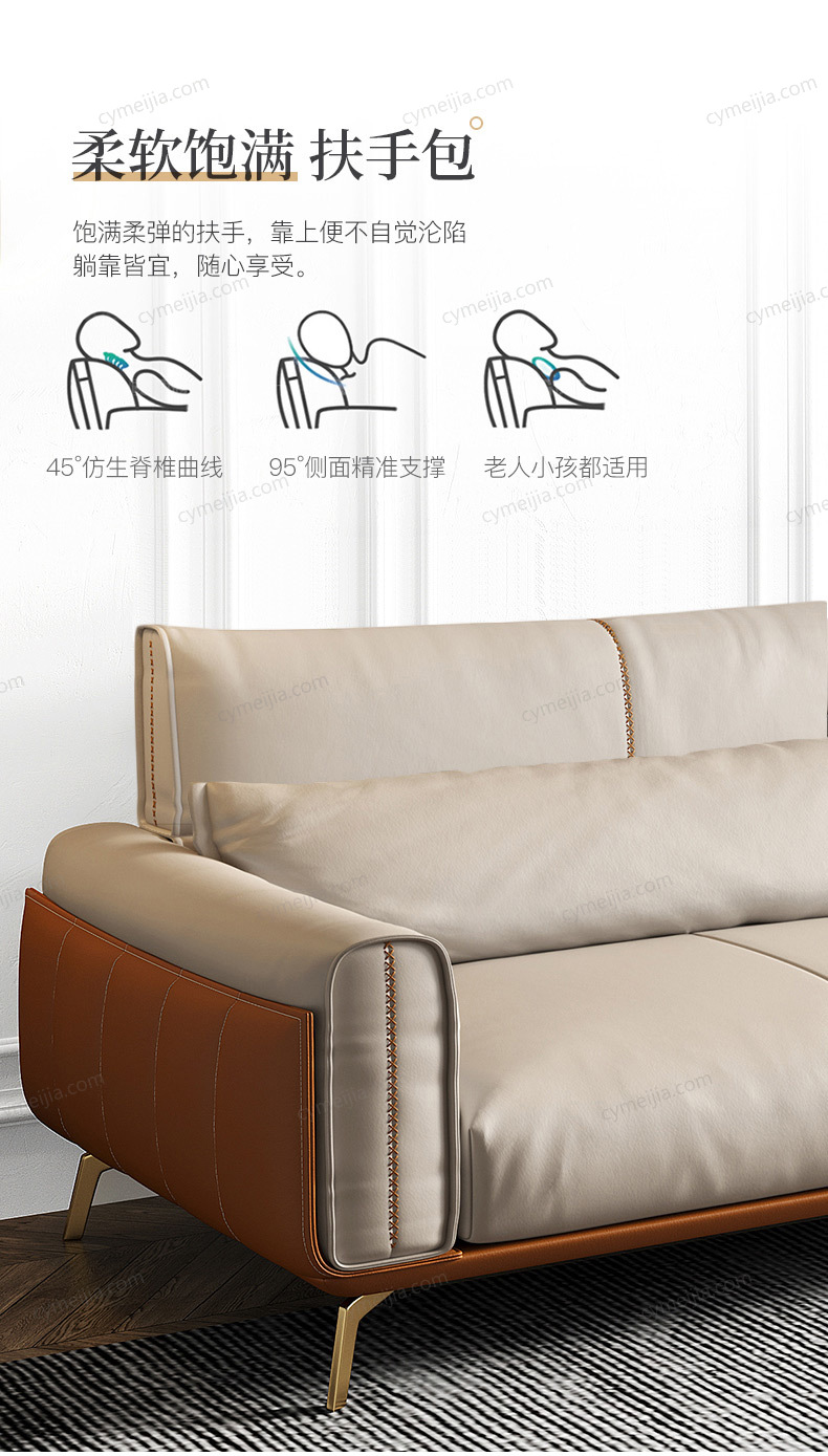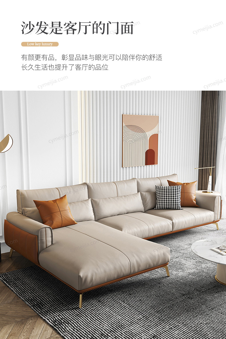 | 产品材质 : | 超纤皮+高密度海绵+俄罗斯落叶松实木框架+五金镀金脚 |
