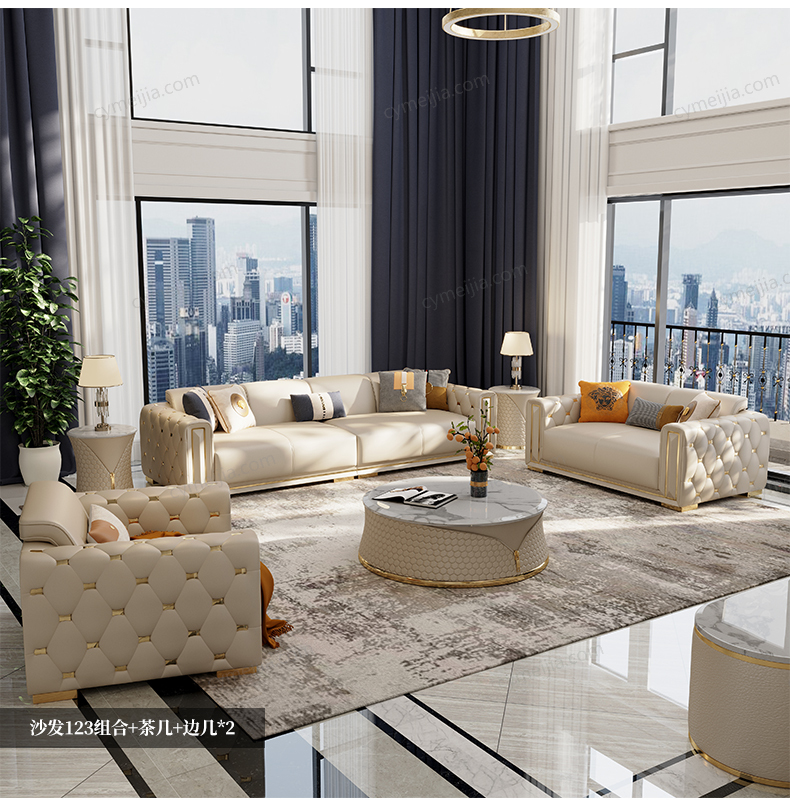 | 产品材质 : 接触面进口头层黄牛皮+高密度海绵+俄罗斯落叶松实木框架+不锈钢五金镀金 | 包件数 : 1 | 包装体积(m3) : 1.2 | |