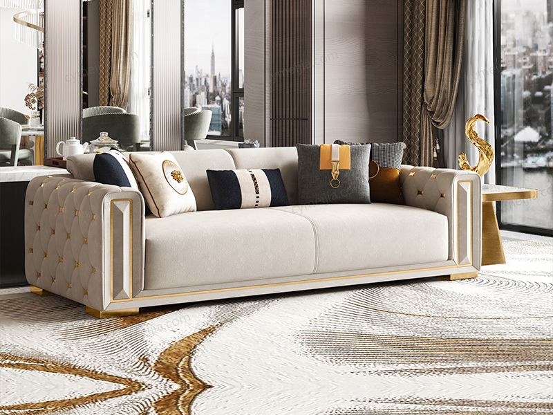 | 产品材质 : 接触面进口头层黄牛皮+高密度海绵+俄罗斯落叶松实木框架+不锈钢五金镀金 | 包件数 : 1 | 包装体积(m3) : 1.8 | |
