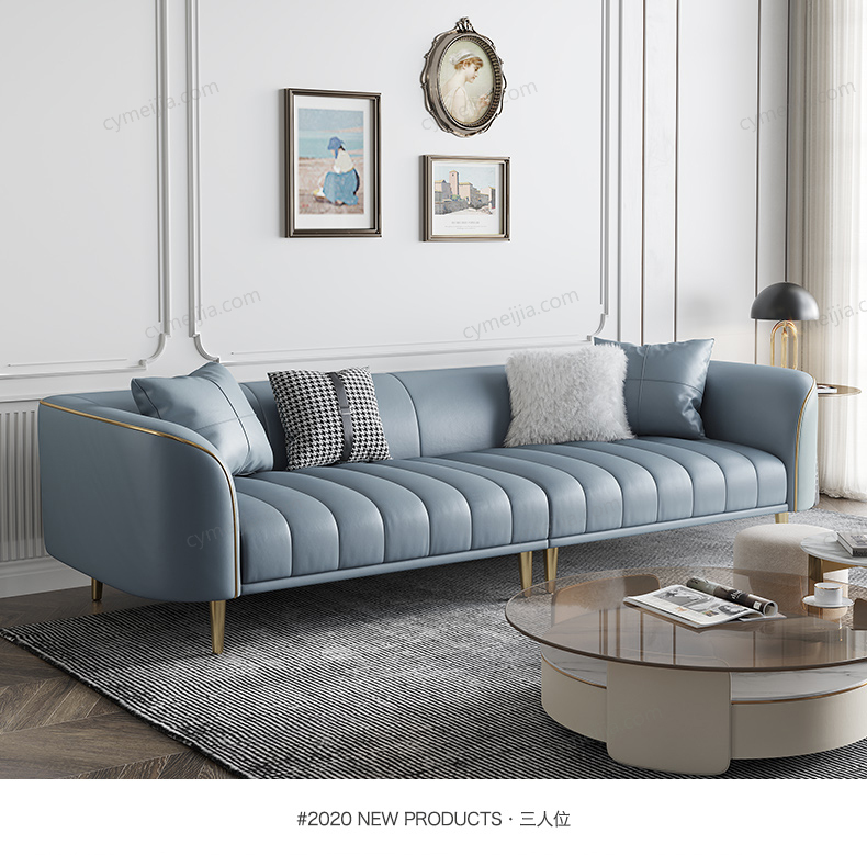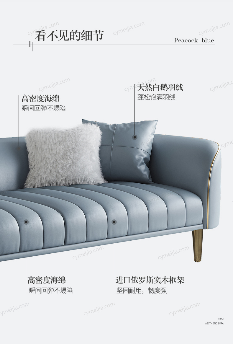 | 产品材质 : | 接触面进口头层黄牛皮+羽绒+高密度海绵+俄罗斯落叶松实木框架+不锈钢镀金脚 |