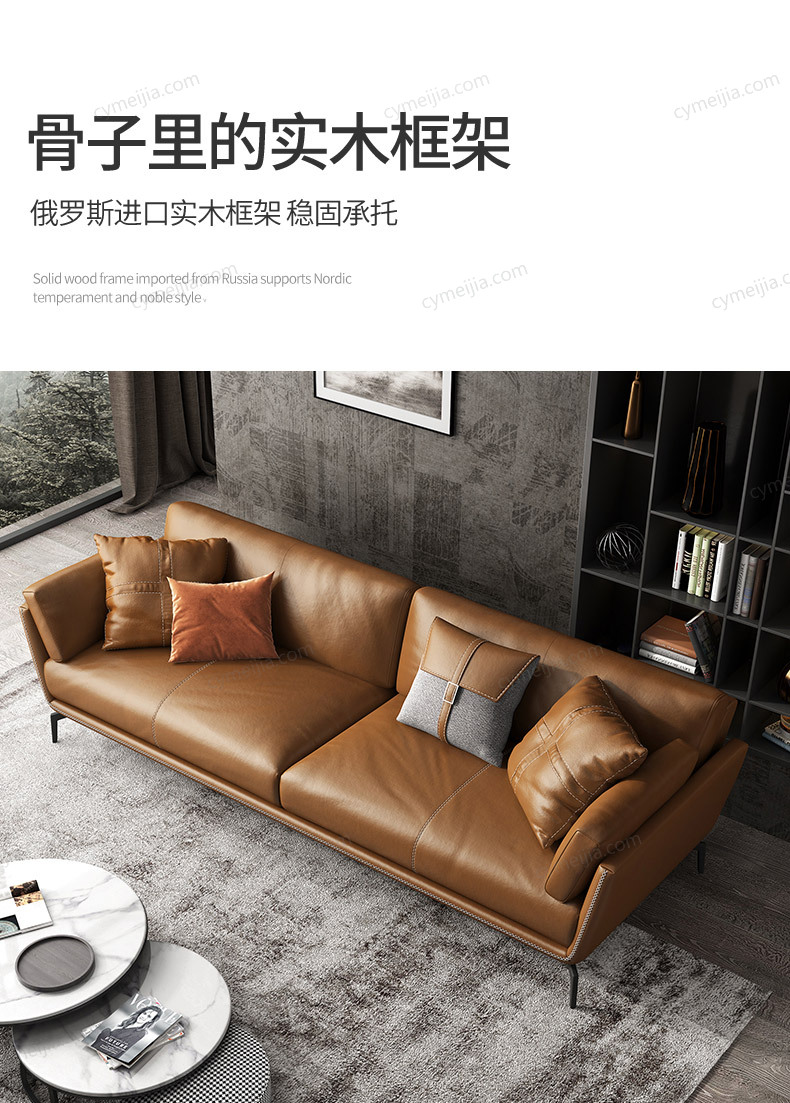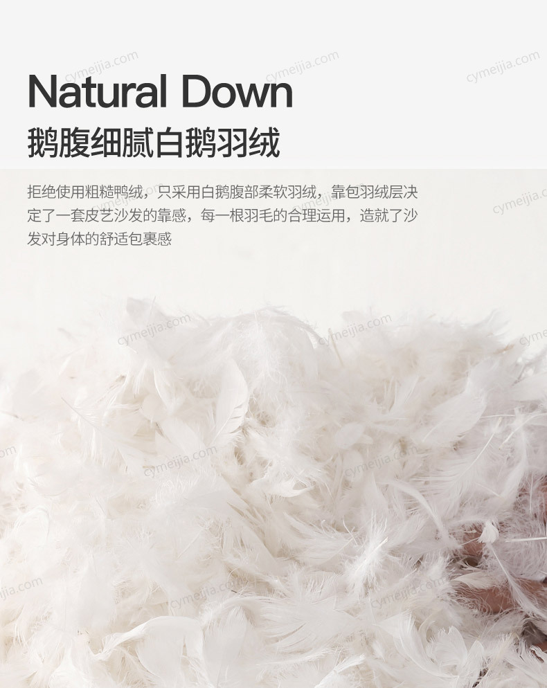 | 产品材质 : | 接触面进口头层黄牛皮+白鹅羽绒靠包+高密度海绵+俄罗斯落叶松实木框架+碳素钢脚 |