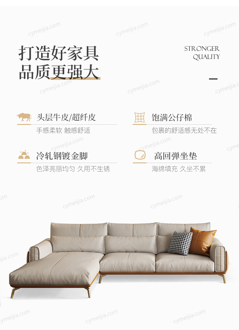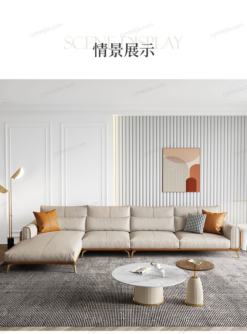 | 产品材质 : | 超纤皮+高密度海绵+俄罗斯落叶松实木框架+五金镀金脚 |