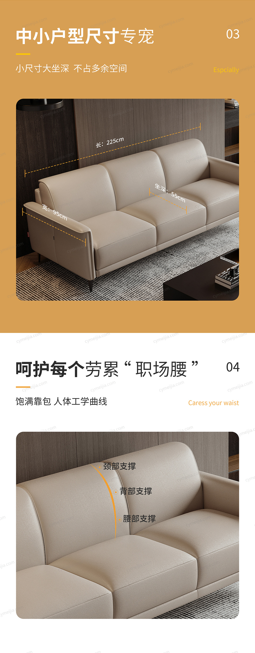 | 产品材质 : | 接触面进口头层黄牛皮+实木框架+高回弹环保绵+14CM金属高脚 |