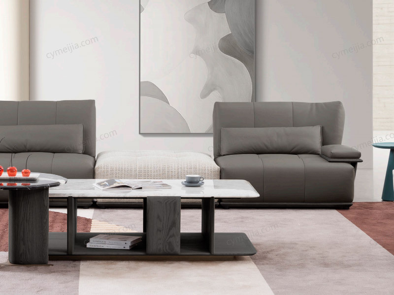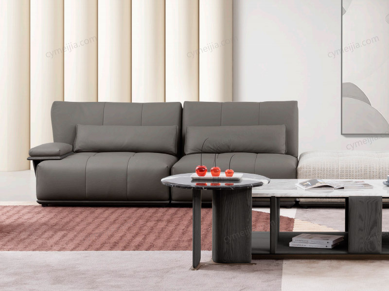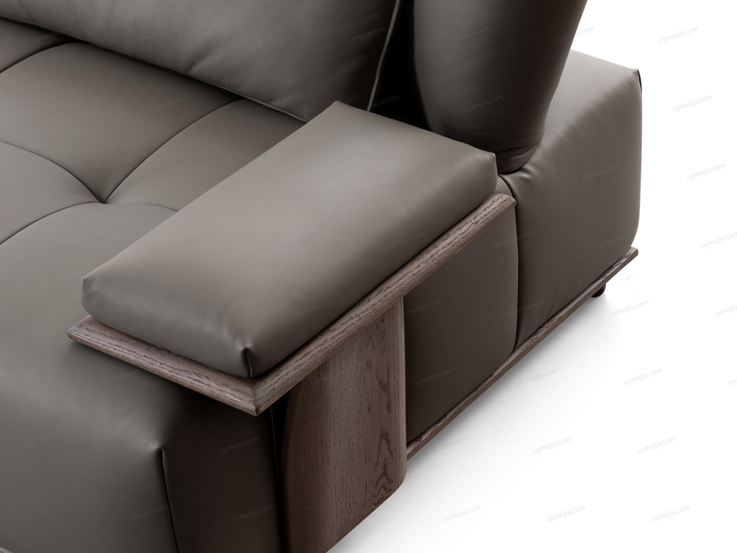 | 产品材质 : | 接触面进口头层黄牛皮+棉麻布+北美红橡木+新西兰无节落叶松木+羽绒靠包+不锈钢电镀拉丝 |