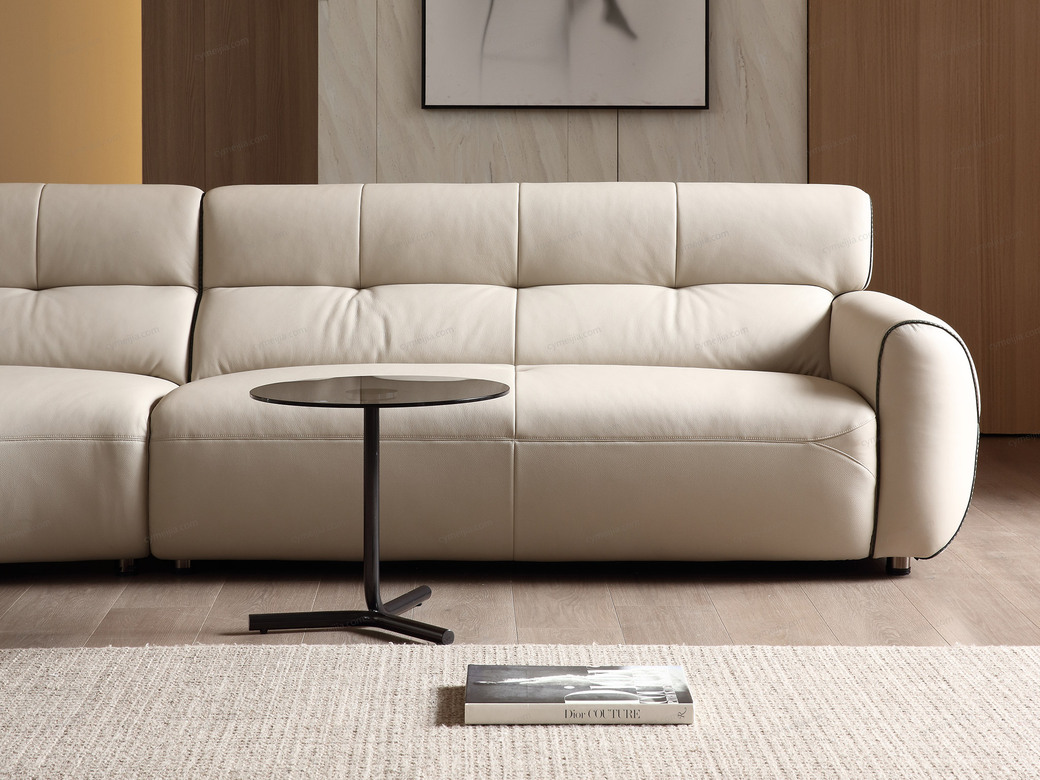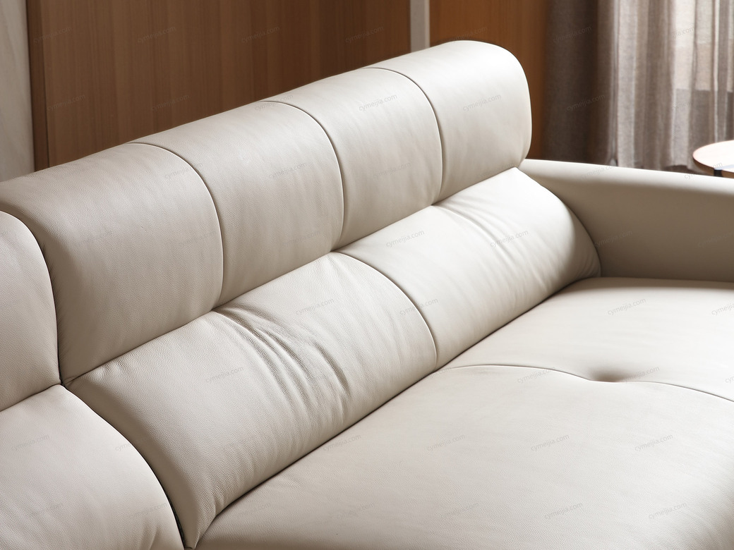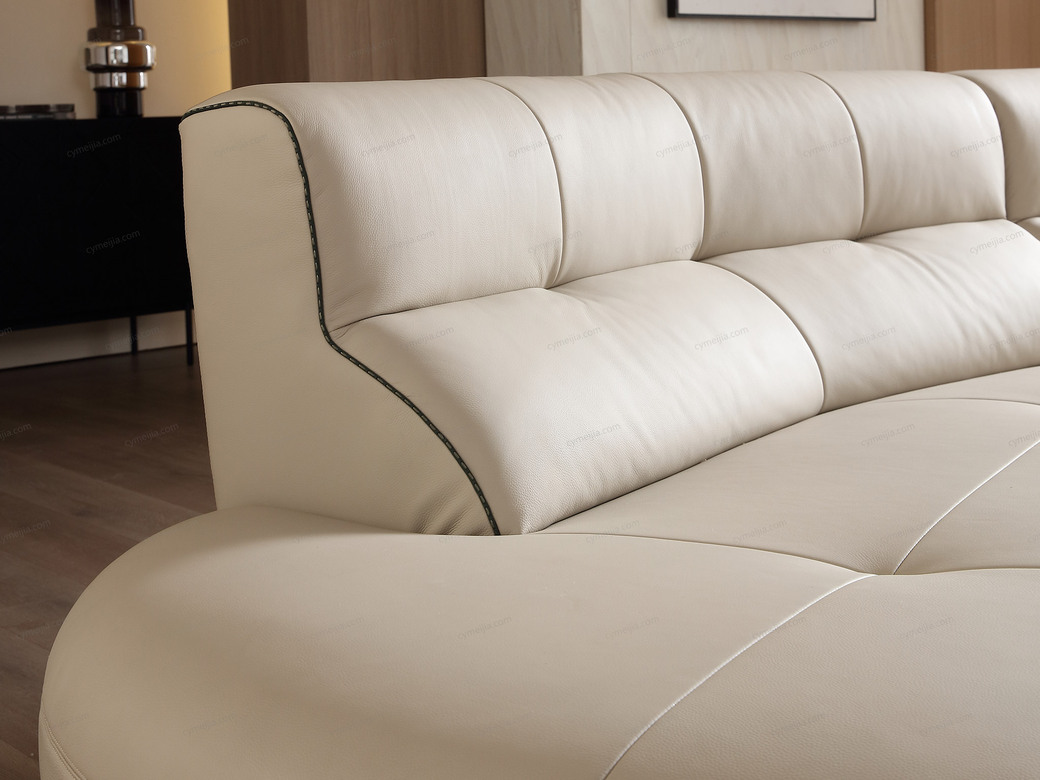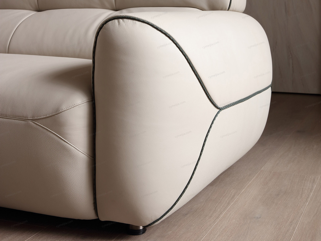 | 产品材质 : | 接触面进口头层黄牛皮+高回弹海绵+蛇形圆簧+织带+进口落叶松实木框架+5分可调不锈钢钛黑脚 |
