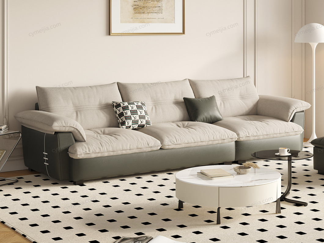 | 产品材质 : | 科技布+棉麻布座包靠包+羽绒抱枕+优质紫罗兰海绵填充+俄罗斯进口落叶松木框架+实木脚 |