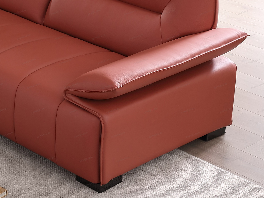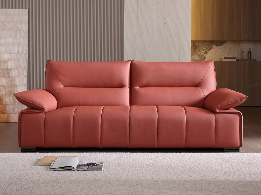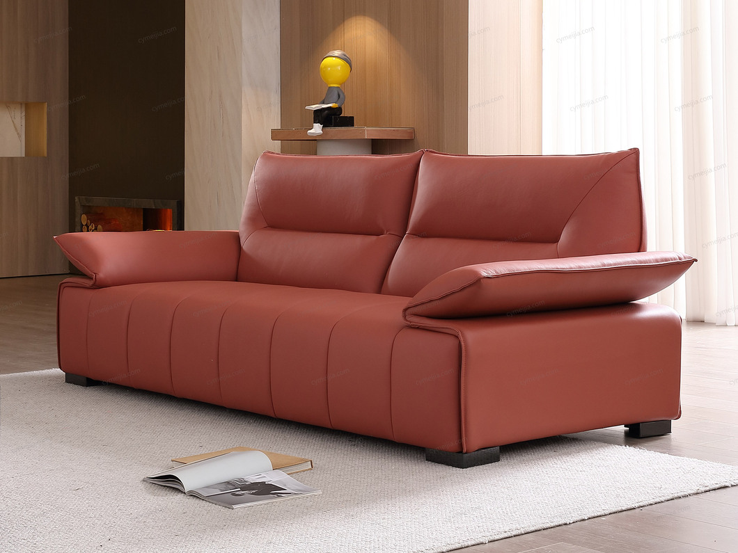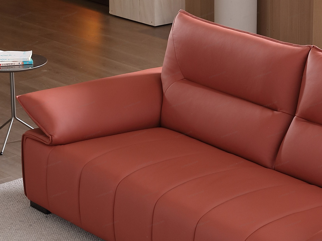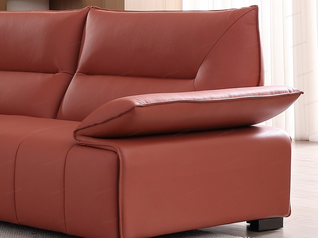 | 产品材质 : | 座前接触面进口头层黄牛皮+钢板扶手+海绵+蛇形圆簧+织带+进口落叶松实木框架+塑料不锈钢5分脚 |