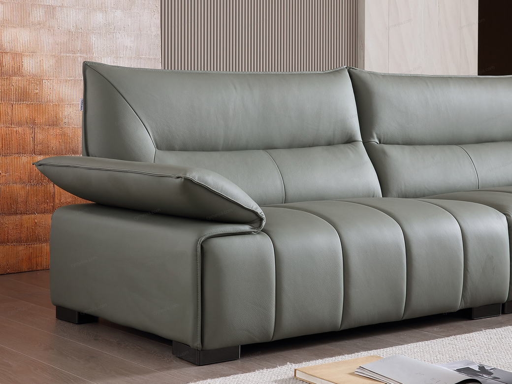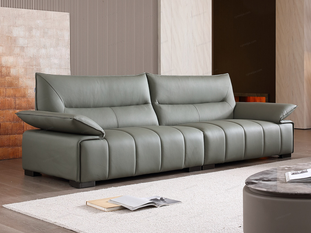 | 产品材质 : | 座前接触面进口头层黄牛皮+钢板扶手+海绵+蛇形圆簧+织带+进口落叶松实木框架+塑料不锈钢5分脚 |