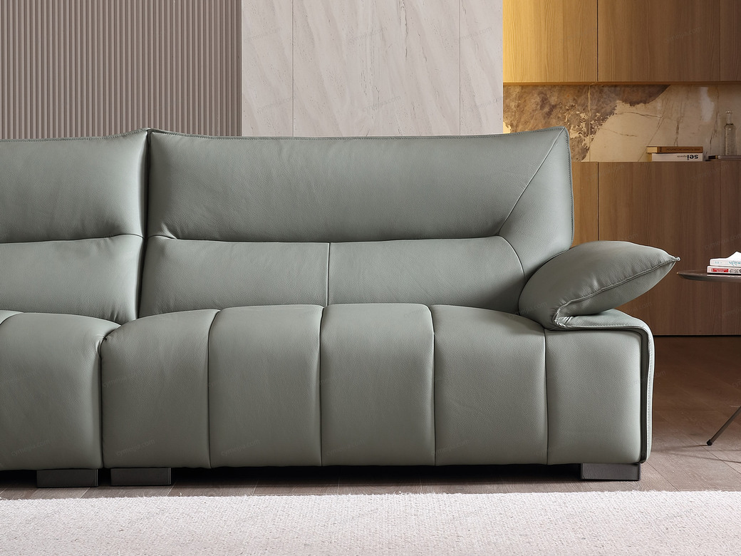 | 产品材质 : 座前接触面进口头层黄牛皮+钢板扶手+海绵+蛇形圆簧+织带+进口落叶松实木框架+塑料不锈钢5分脚 | 包件数 : 2 | 包装体积(m3) : 1.8 | |