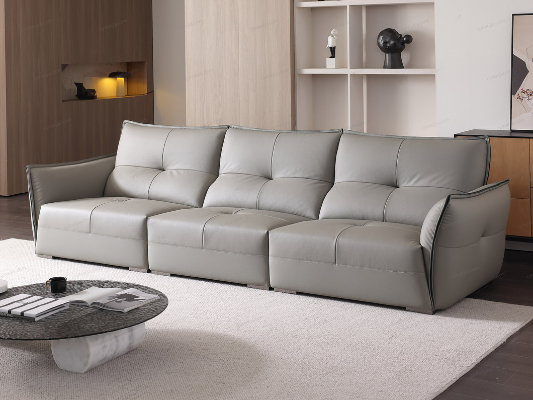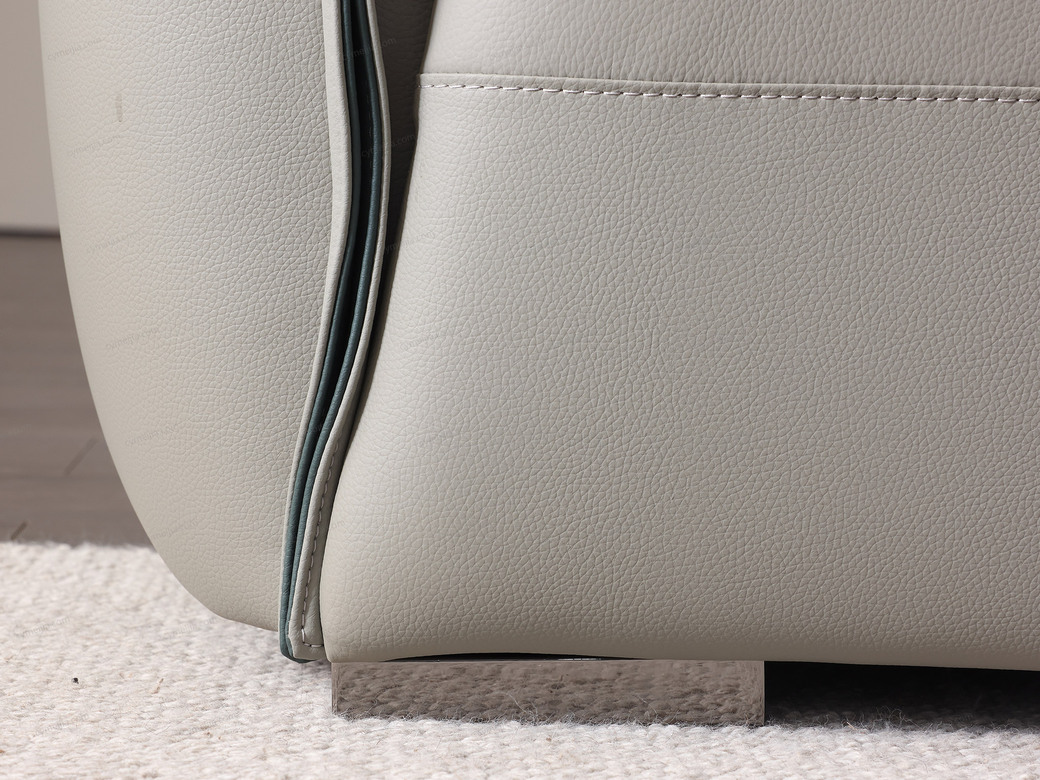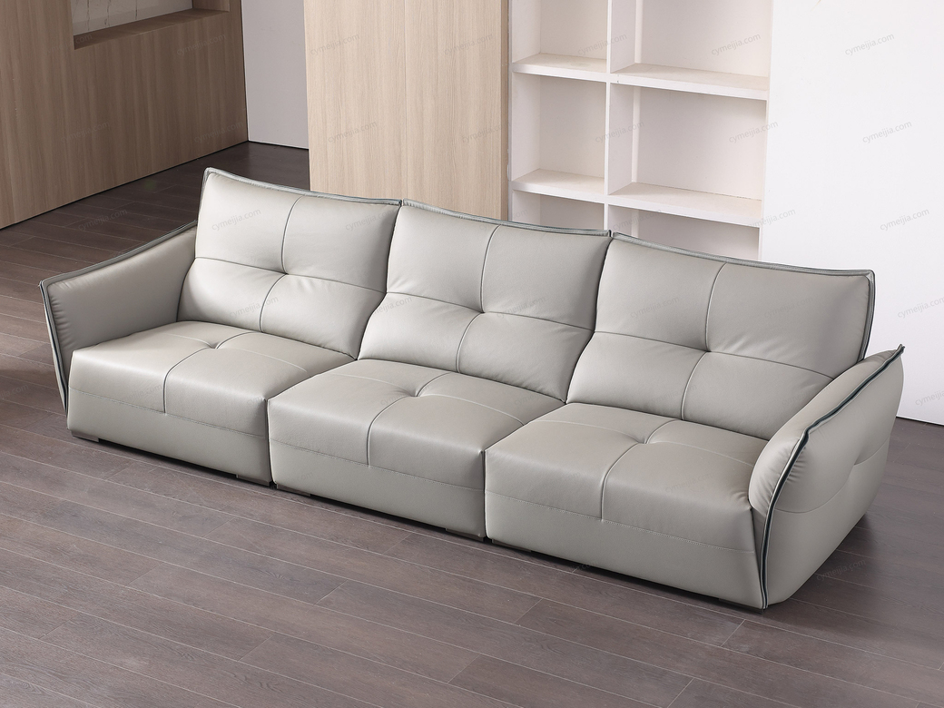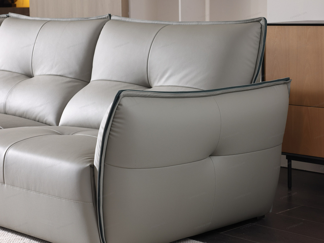 | 产品材质 : | 接触面进口头层黄牛皮+海绵+蛇形圆簧+织带+进口落叶松实木框架+不锈钢2.5分脚 |