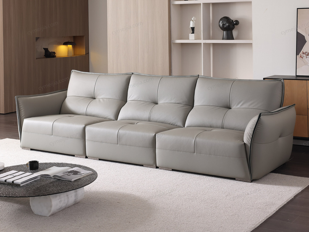 | 产品材质 : 接触面进口头层黄牛皮+海绵+蛇形圆簧+织带+进口落叶松实木框架+不锈钢2.5分脚 | 包件数 : 3 | 包装体积(m3) : 2.1 | |