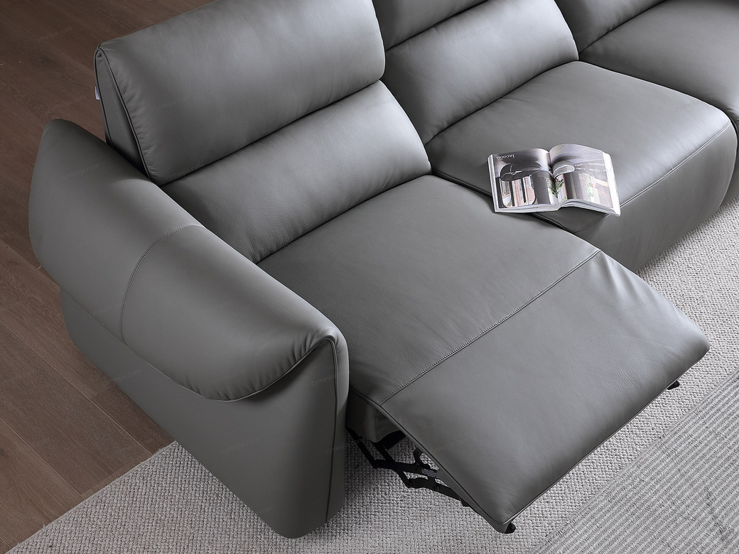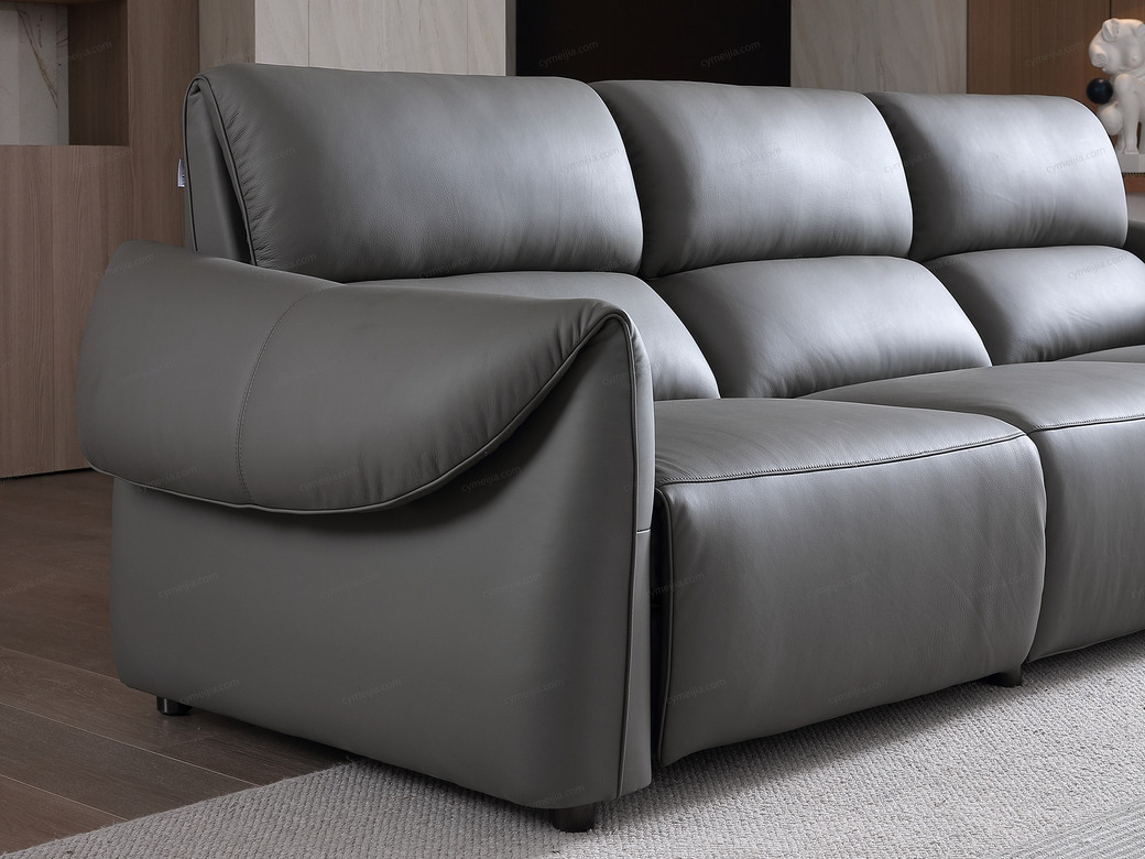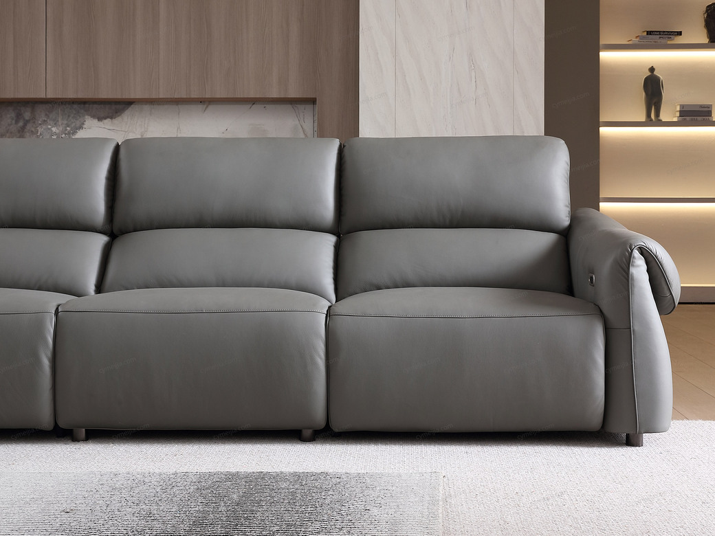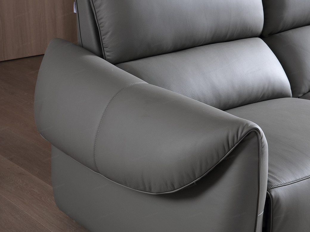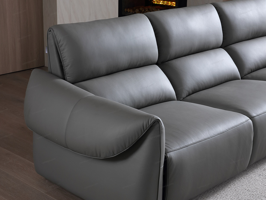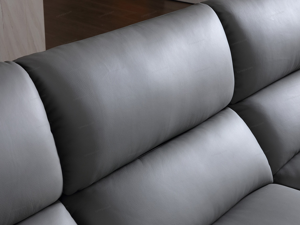 | 产品材质 : | 接触面进口头层黄牛皮+羽绒靠包+海绵+蛇形圆簧+织带+进口落叶松实木框架+5分可调不锈钢钛黑脚 |