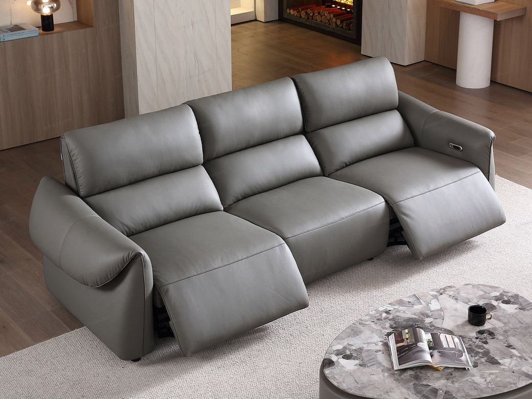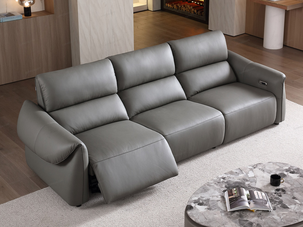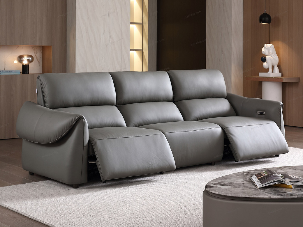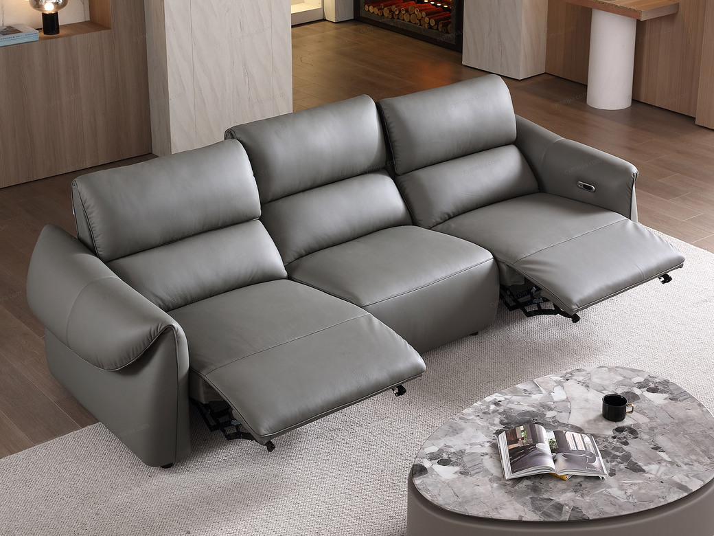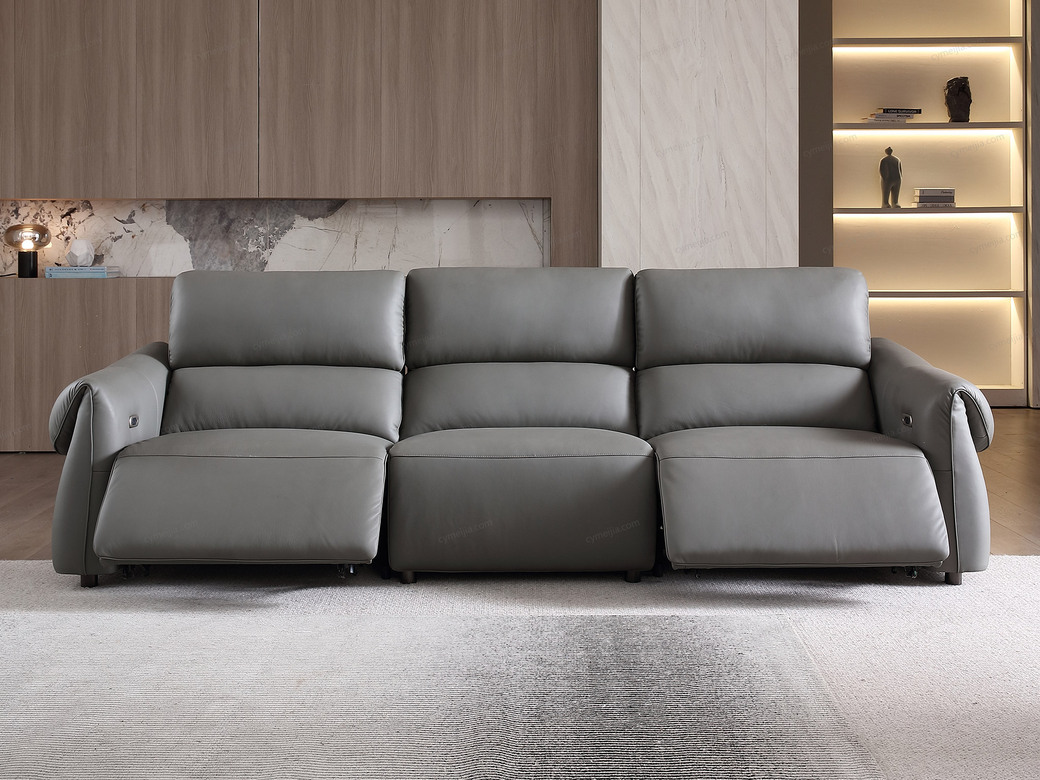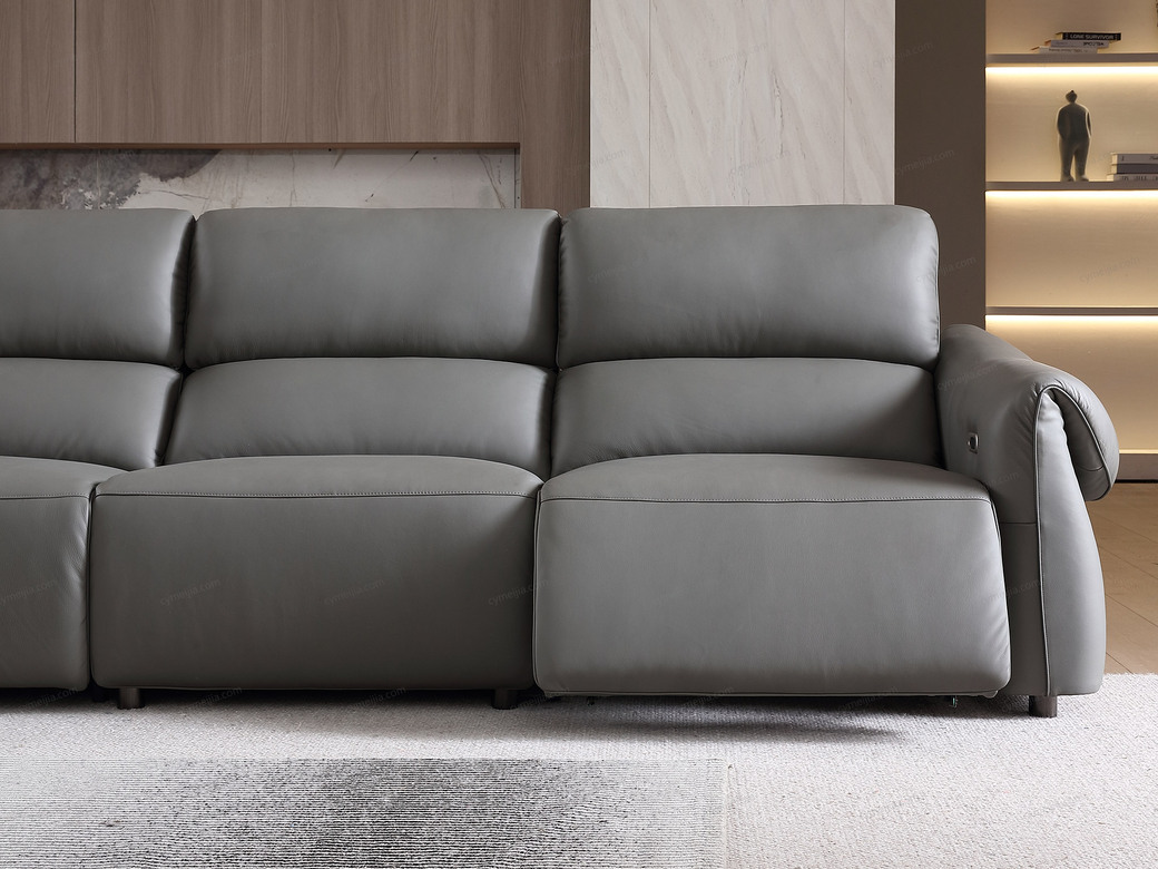 | 产品材质 : | 接触面进口头层黄牛皮+羽绒靠包+海绵+蛇形圆簧+织带+进口落叶松实木框架+5分可调不锈钢钛黑脚 |