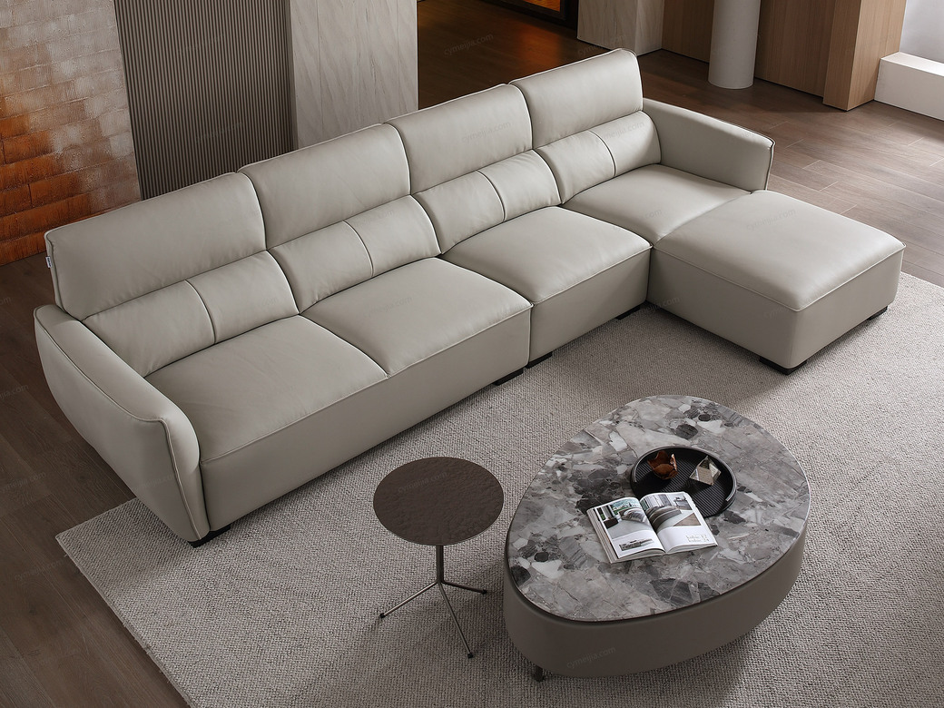| 产品材质 : | 接触面进口头层黄牛皮+海绵+蛇形圆簧+织带+进口落叶松实木框架+塑料不锈钢5分脚 |