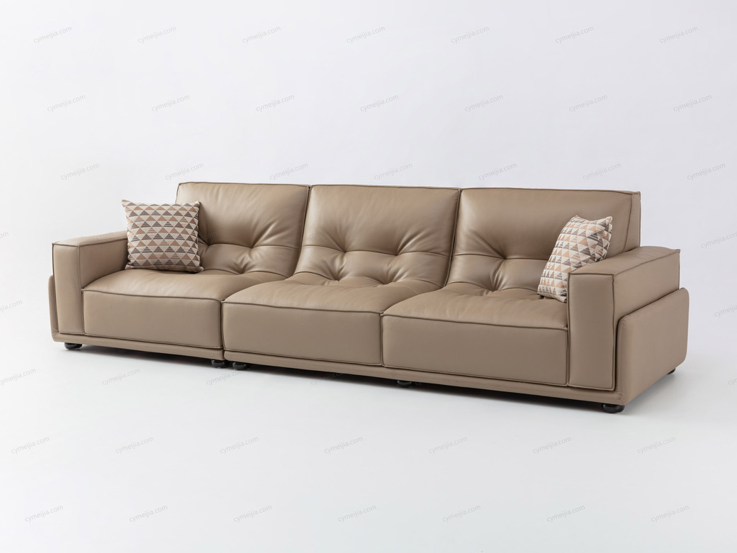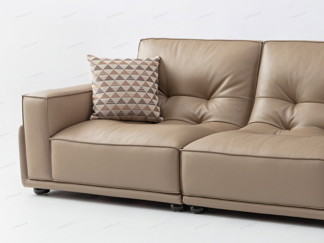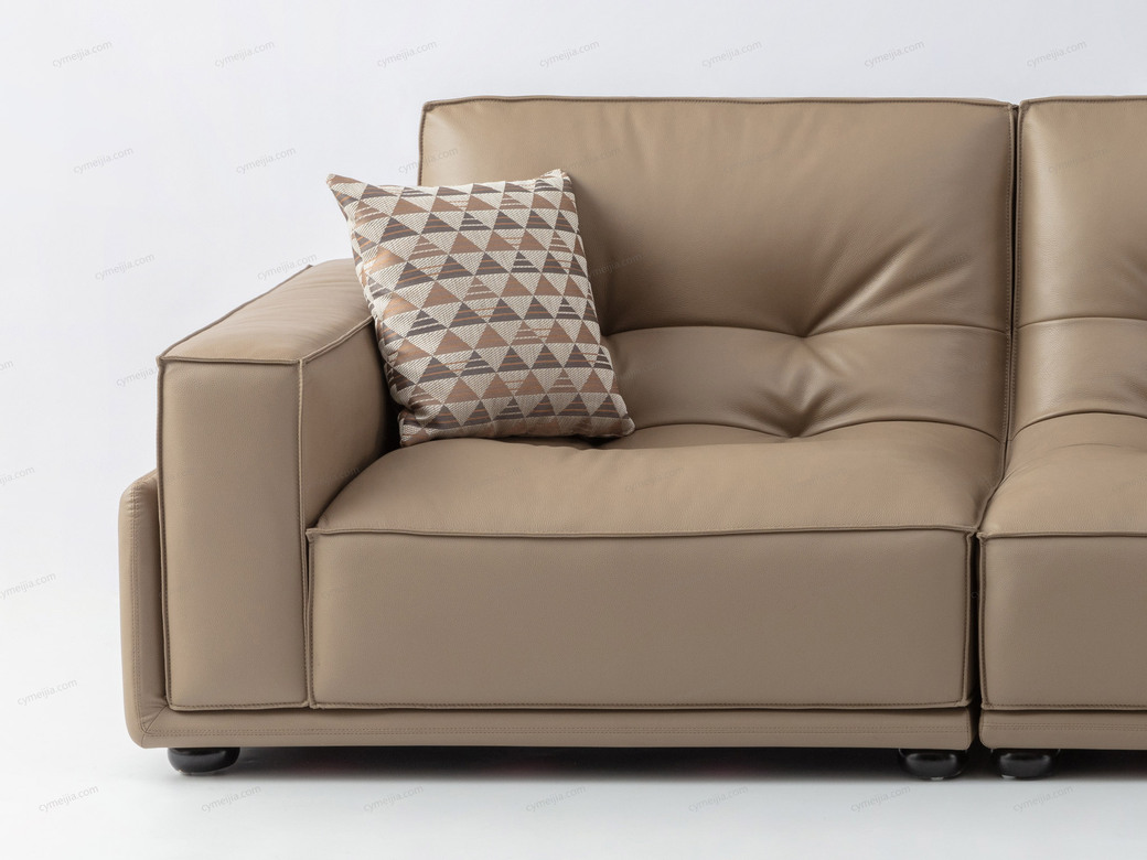 | 产品材质 : | 接触面进口头层黄牛皮+座包三明治结构高回弹海绵+澳大利亚进口桉木框架+实木脚 |
