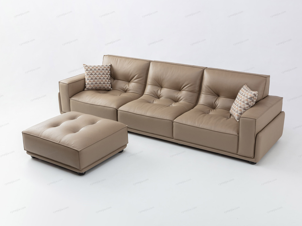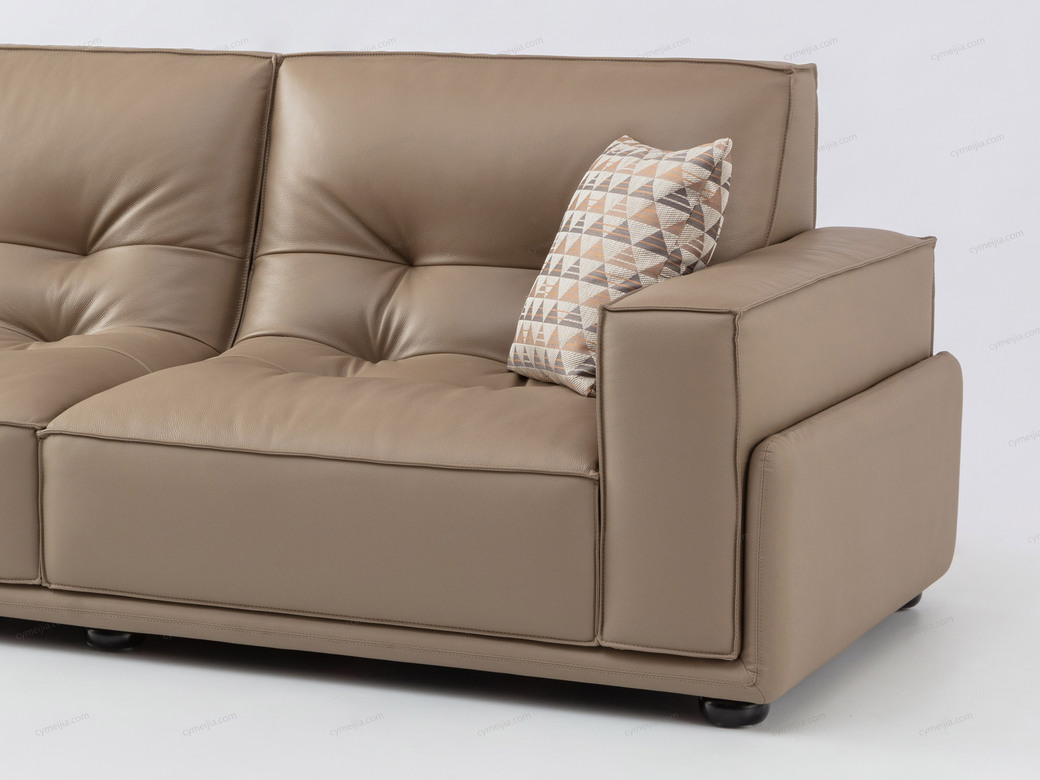 | 产品材质 : | 接触面进口头层黄牛皮+座包三明治结构高回弹海绵+澳大利亚进口桉木框架+实木脚 |