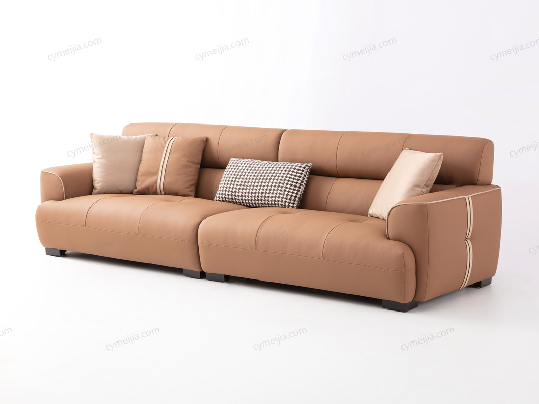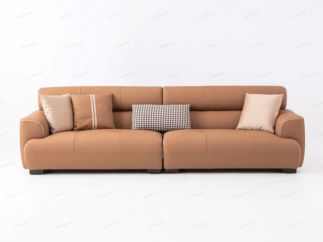 | 产品材质 : | 接触面进口头层黄牛皮+羽绒靠包+座包三明治结构高回弹海绵+澳大利亚进口桉木框架+实木脚 |