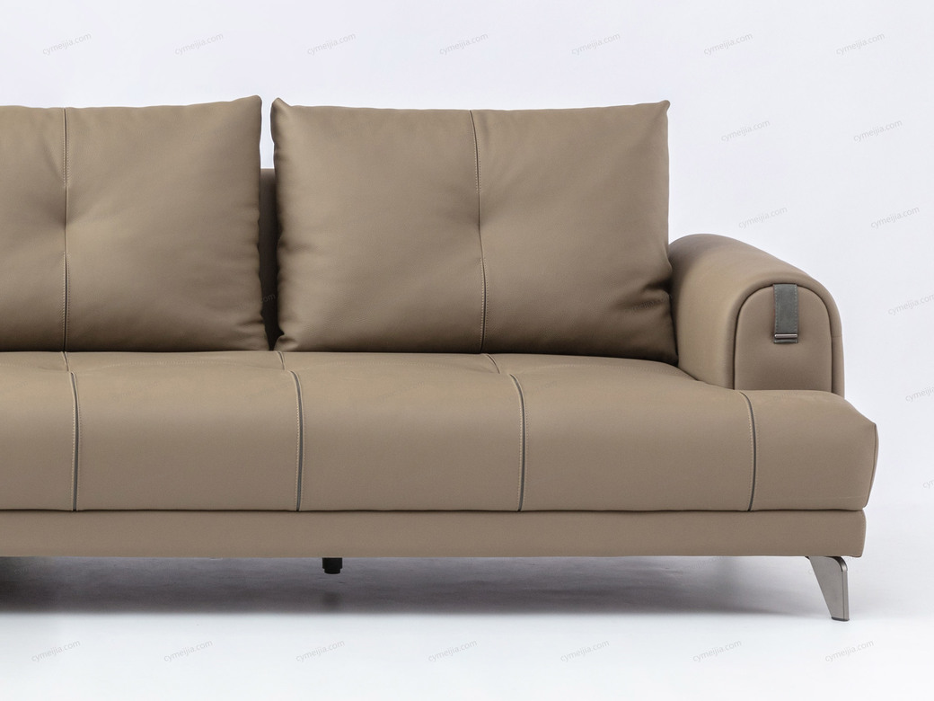 | 产品材质 : | 接触面进口头层黄牛皮+羽绒靠包+座包三明治结构高回弹海绵+澳大利亚进口桉木框架+金属脚 |