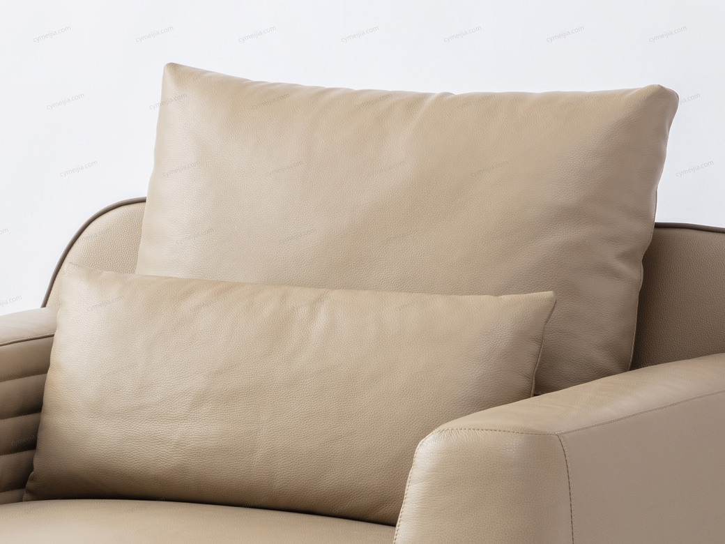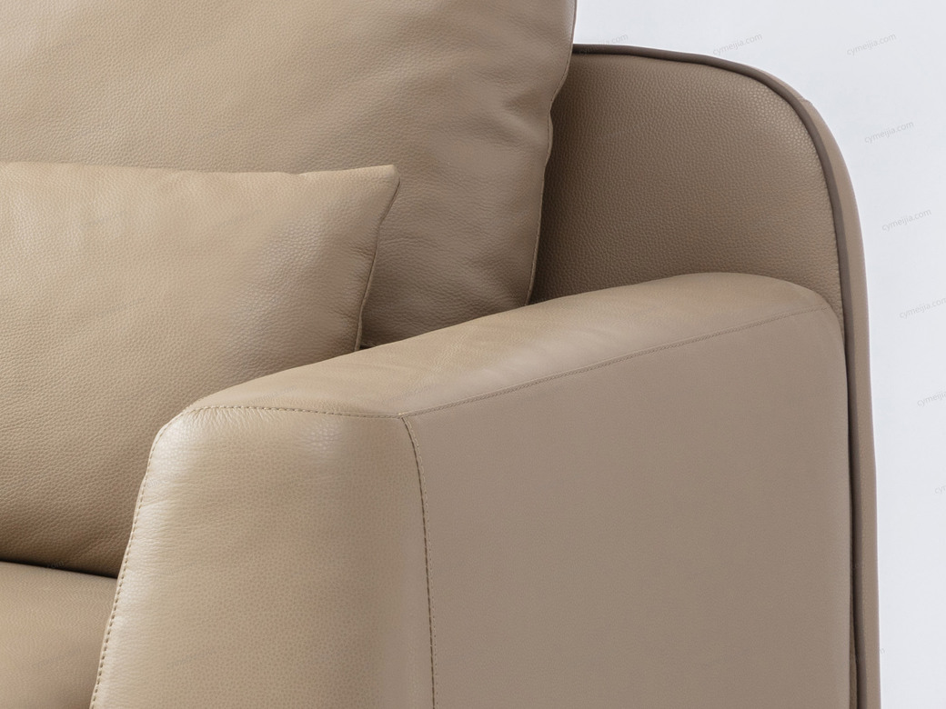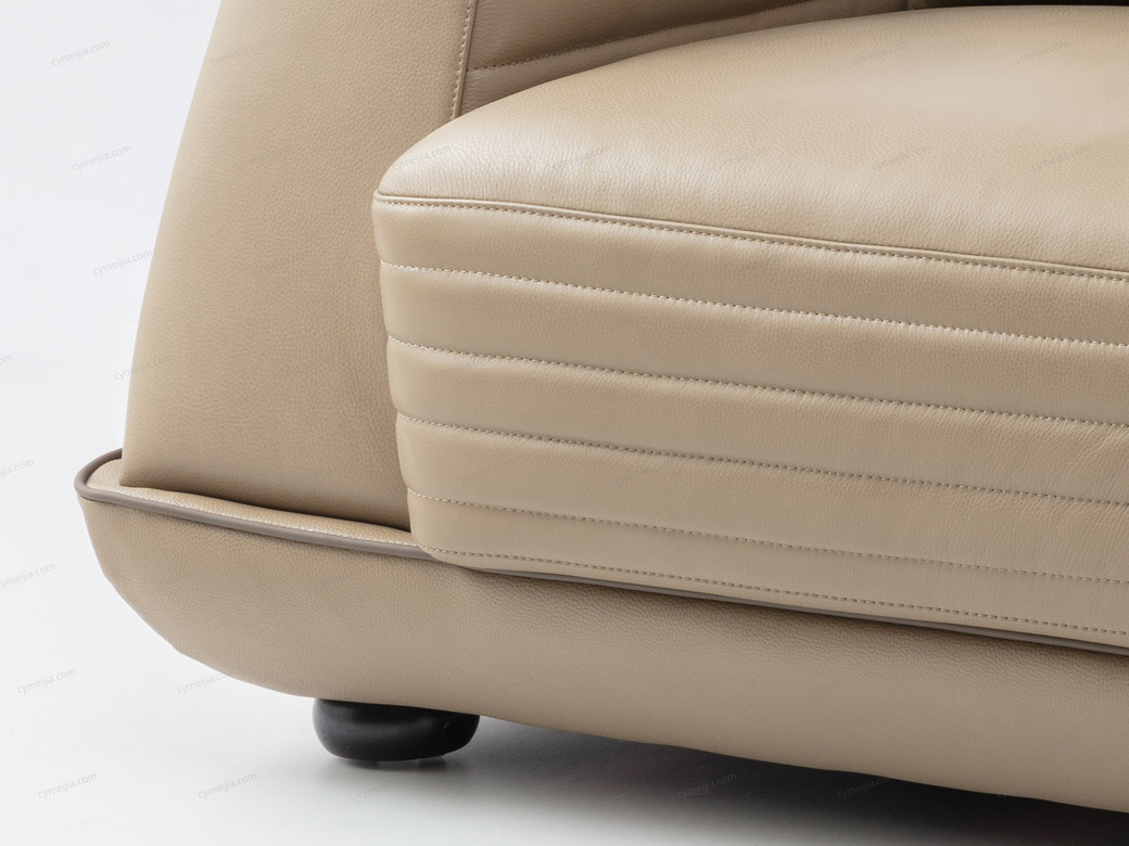 | 产品材质 : | 接触面进口头层黄牛皮+羽绒靠包+座包三明治结构高回弹海绵+澳大利亚进口桉木框架+实木脚 |