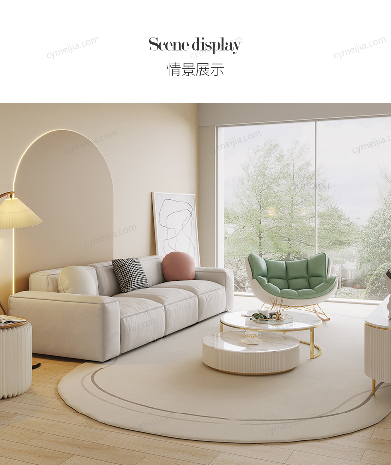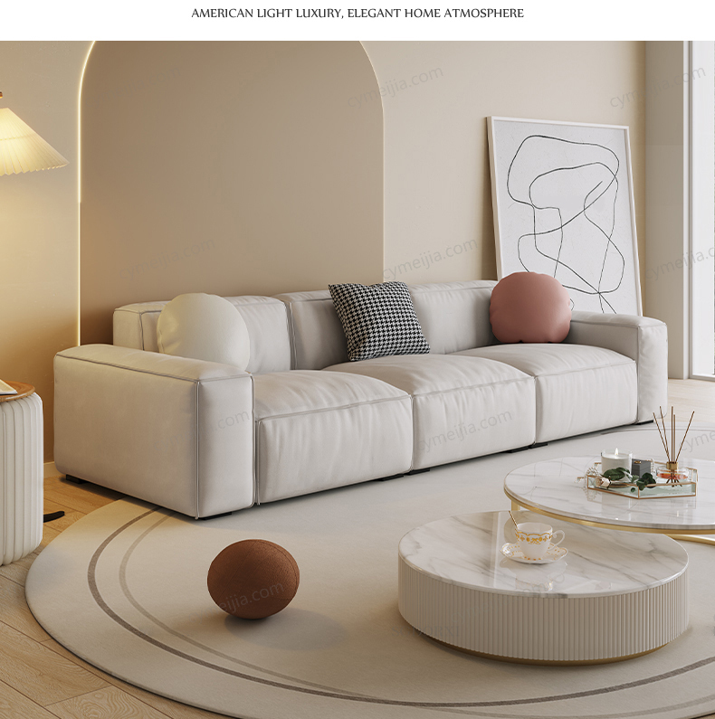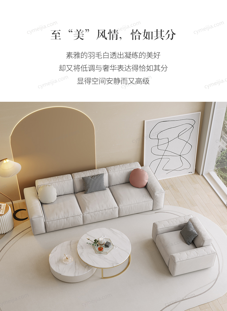 | 产品材质 : | 科技布+羽绒座包/抱枕+高密度海绵+俄罗斯落叶松实木框架+实木脚 |