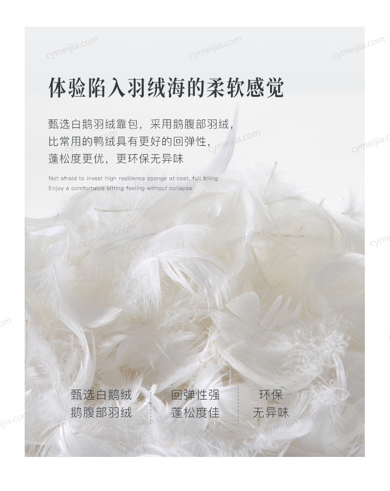 | 产品材质 : | 科技绒布+羽绒+高密度海绵+俄罗斯进口松木框架 |