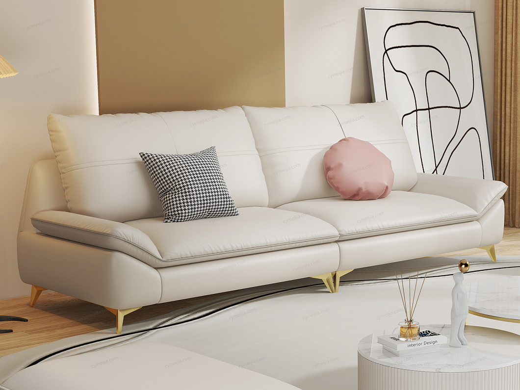 | 产品材质 : | 仿真皮+羽绒靠包+高密度海绵+四面刨光桉木方加松木方+进口4.0蛇形弹簧+加宽橡筋 |