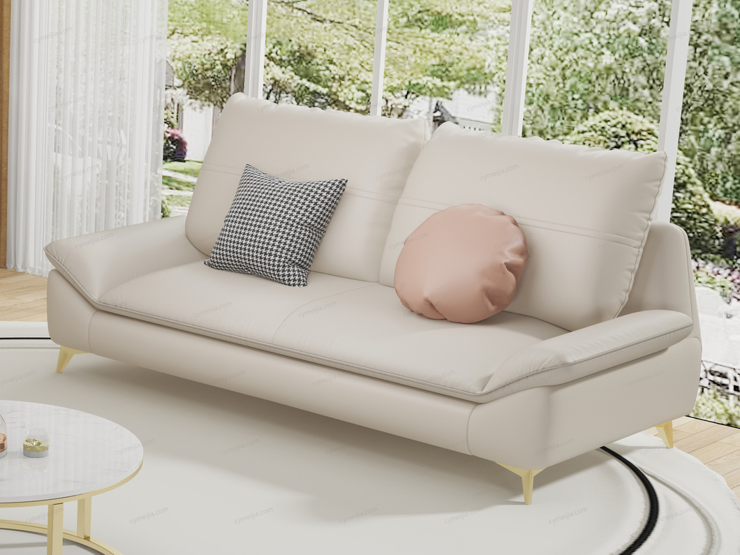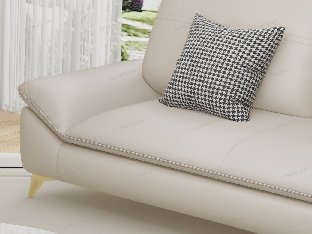 | 产品材质 : | 仿真皮+羽绒靠包+高密度海绵+四面刨光桉木方加松木方+进口4.0蛇形弹簧+加宽橡筋 |