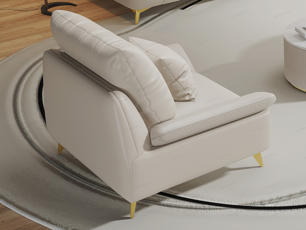 | 产品材质 : 接触面进口头层黄牛皮+羽绒靠包+高密度海绵+四面刨光桉木方加松木方+进口4.0蛇形弹簧+加宽橡筋 | 包件数 : 1 | 包装体积(m3) : 0.60 | |