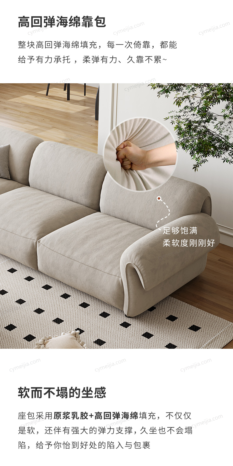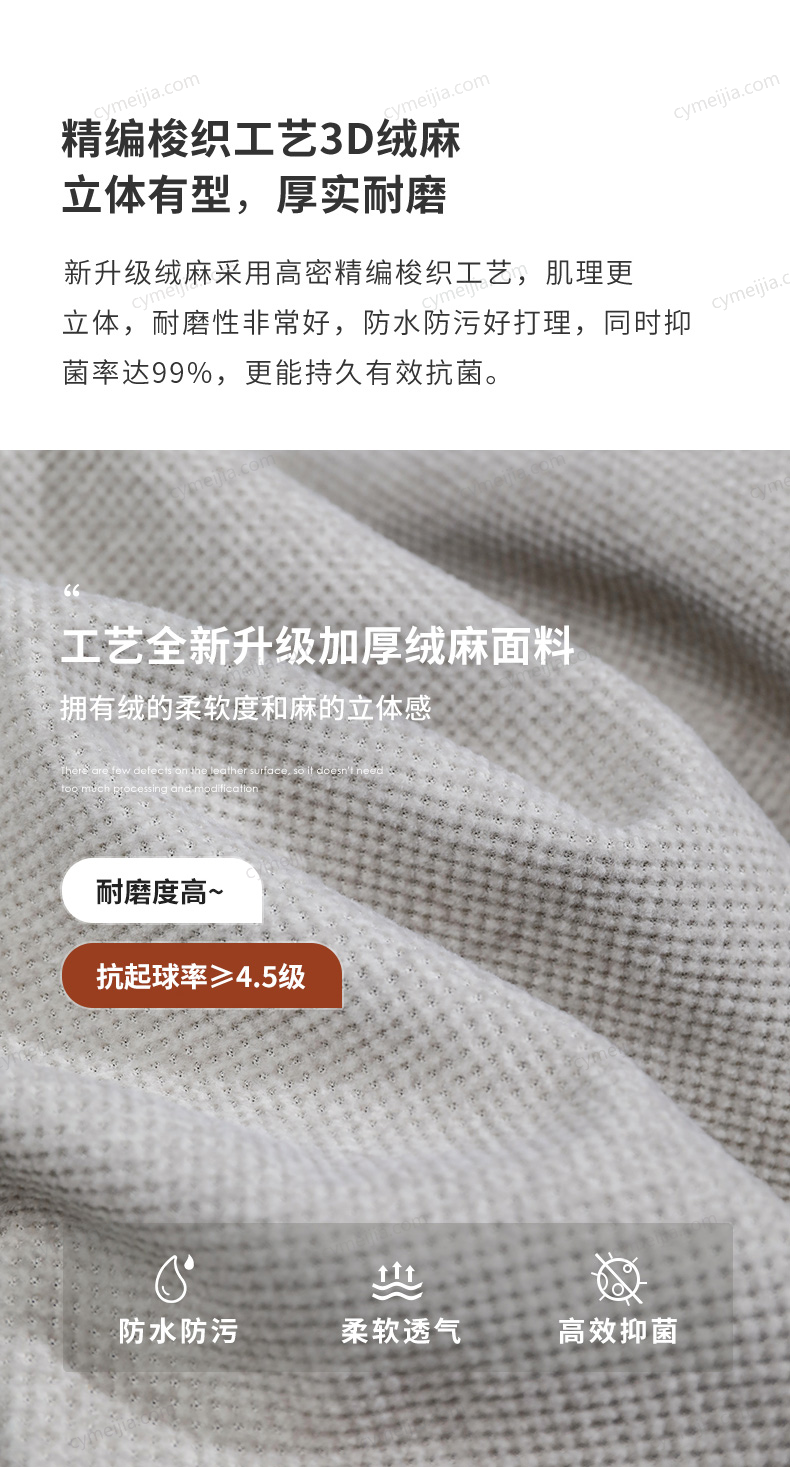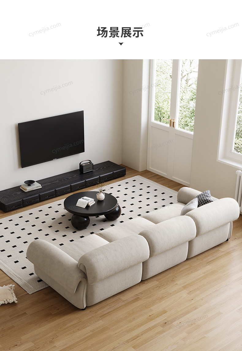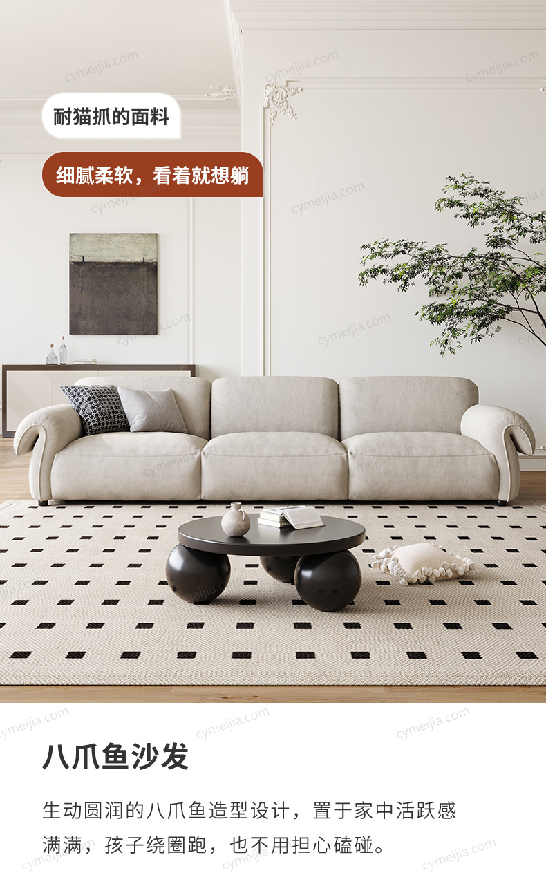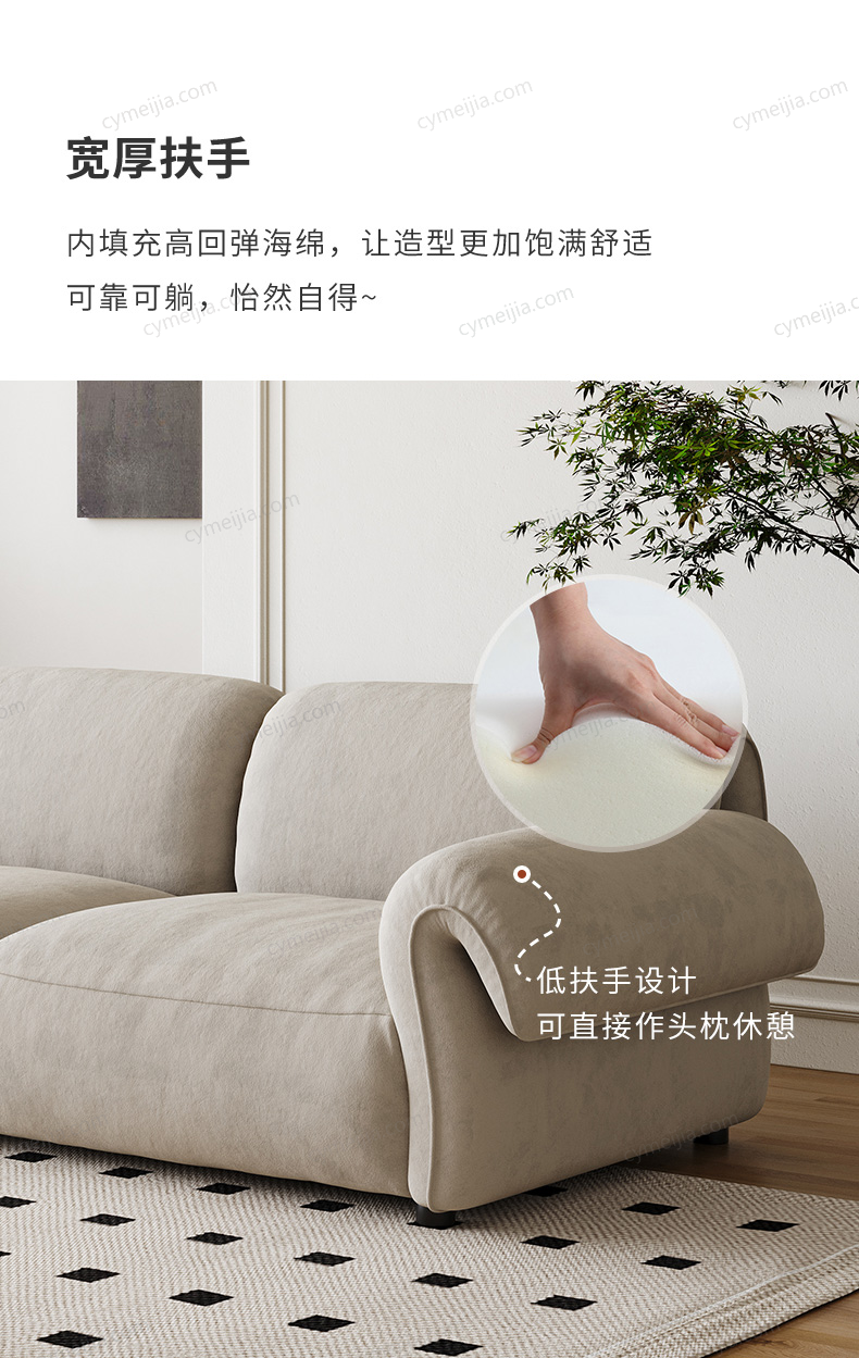 | 产品材质 : | 猫抓绒+羽绒座包+优质紫罗兰高密度海绵+俄罗斯落叶松实木框架+实木脚 |